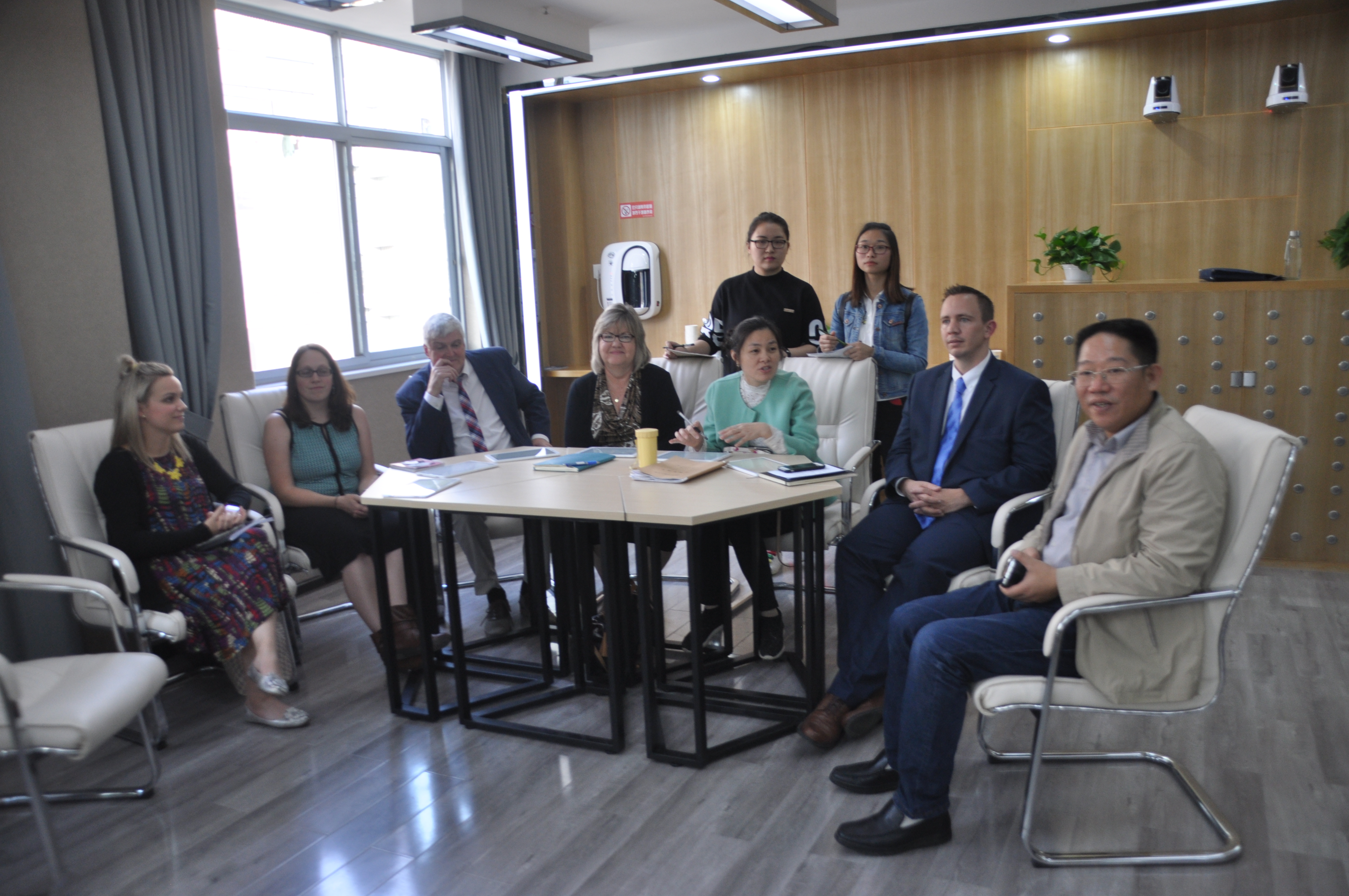 作为beats365官方网站-美国乔治福克斯大学第一届研究生国际交流周最后一项学术交流活动,10月26日下午,在国际交流处、教科所负责人陪同下,美国乔治福克斯大学教育公司代表团到beats365官方网站教育硕士联合培养基地岳阳市教科院观摩湖南省高中教研员新高考改革研究工作坊研修活动。