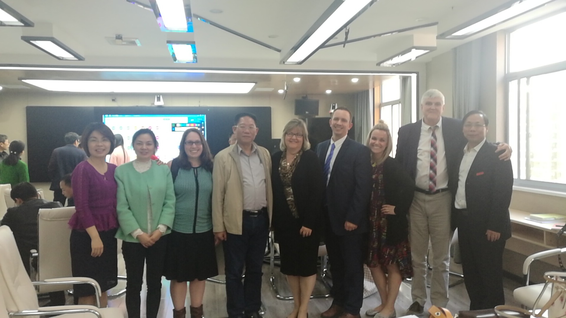 岳阳市教科院经理葛天普向乔治福克斯大学教育公司代表团介绍了教科院的基本情况,并带领代表团一行参观了教科院智慧研修中心、智能网络会议室、VR体验台。随后,代表团一行与我省高中教研员一道听取了研修活动主题讲座,并通过参与智慧教室互动学习与教研员们进行了热烈地交流。(教育科学研究所)