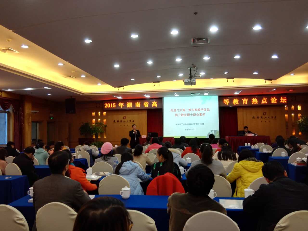 11月20-21日,由湖南省教育科学研究院主办的“2015年湖南省高等教育热点论坛”在长沙举行。此次论坛主题是“转型 ● 特色 ● 质量”,省教育厅和省教科院有关领导出席,来自全省各高普通高校的高教研究者及教育管理人员近150人参加。