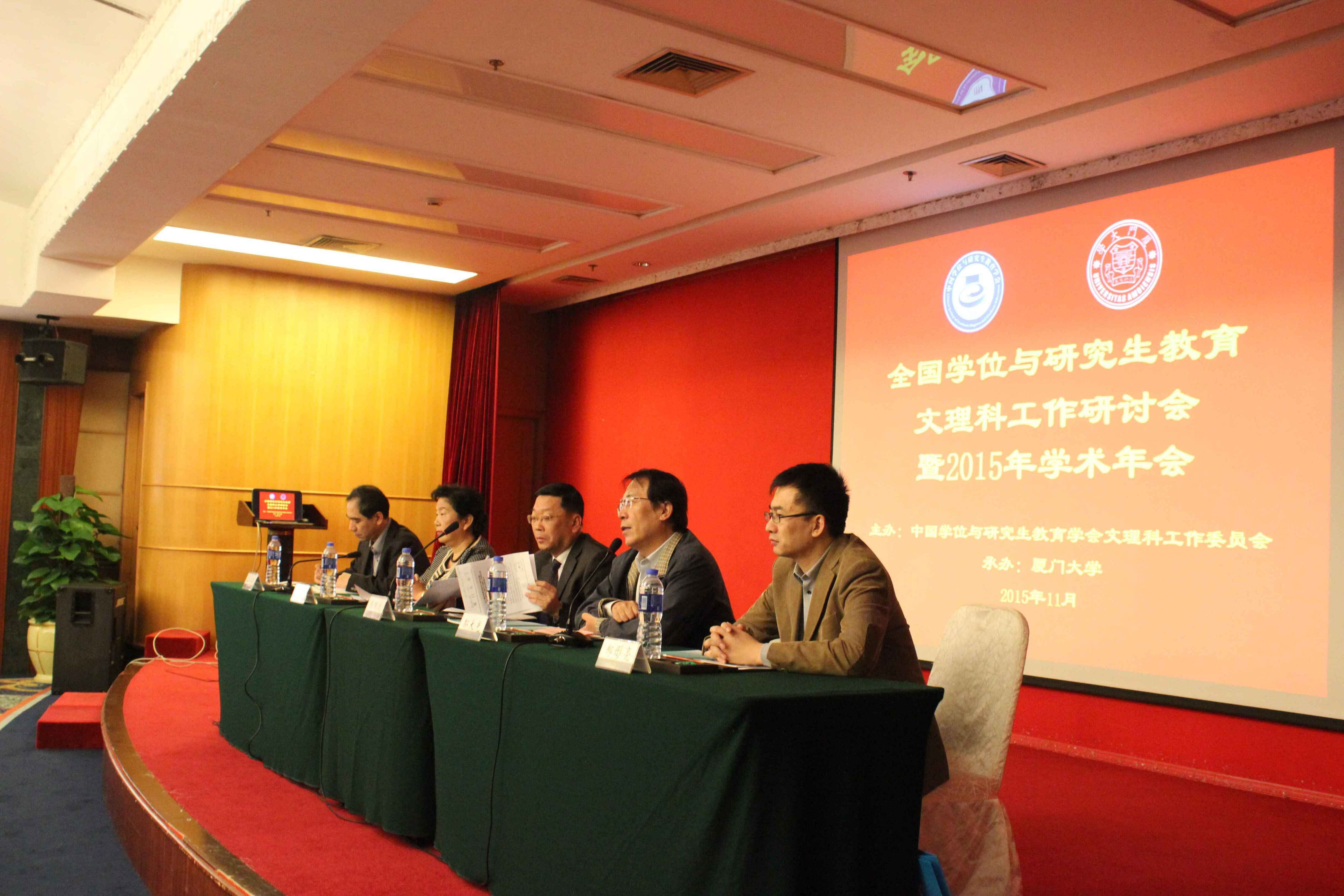 11月26日至28日,由中国学位与研究生教育学会文理科工作委员会主办、厦门大学承办的全国学位与研究生教育文理科工作研讨会暨2015年学术年会在厦门召开,主题是“专业学位研究生教育改革的探索与实践”、“研究生拔尖创新人才培养模式探讨”。会议由中国科公司院士、北京大学首批长江特聘教授、全国文理科工作委员会副主任兼秘书长龚旗煌教授主持,来自北京大学、中国科技大学、厦门大学、南开大学、中山大学、湖南大学等百余所高校以及国务院学位办、福建省教育厅、上海市学位办等主管部门的专家与领导共两百余人与会。beats365官方网站教科所刘理教授参会,并应邀以《对接职业需求 构建教育硕士三维实践教学体系》为题作大会报告。