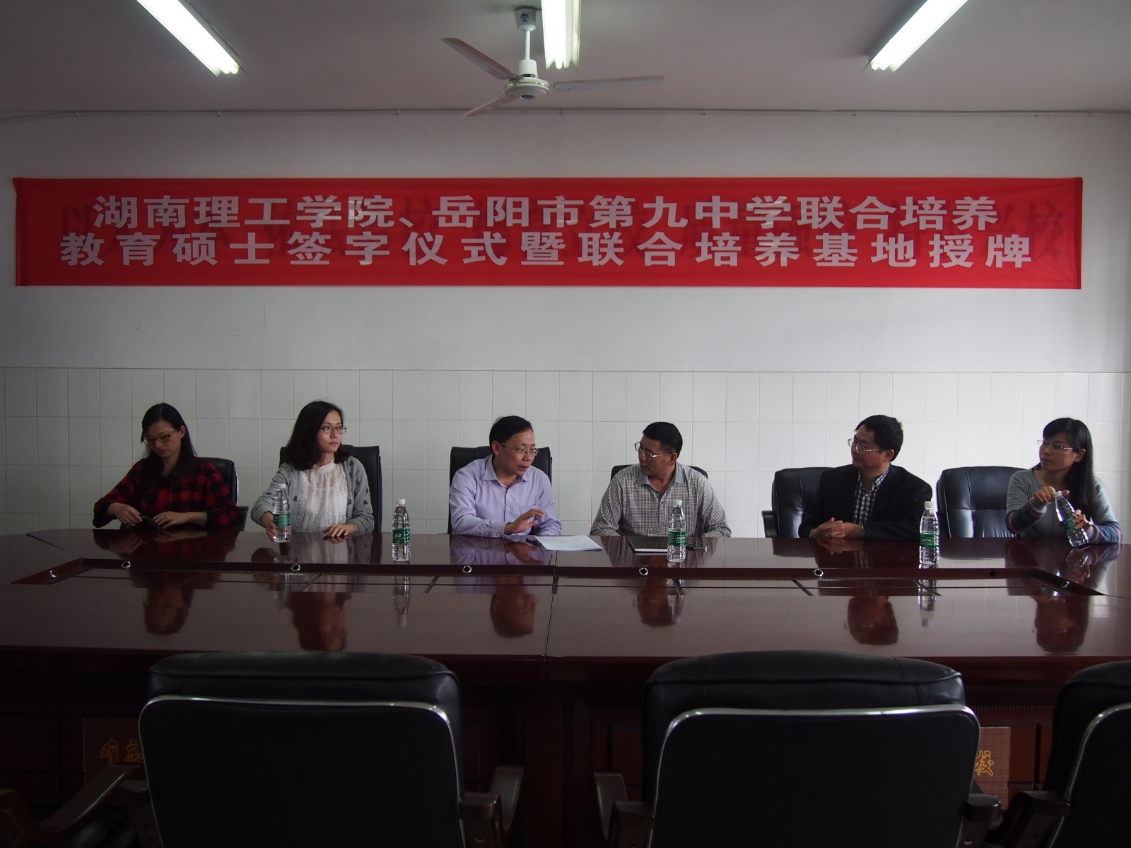 为充分发挥地方优质教育资源在beats365官方网站教育硕士专业学位公司产品中的作用,建立产学有机融合的协同育人模式,确保教育硕士专业学位公司产品质量,近日,公司与分别与岳阳市教育科学与技术研究院、岳阳市第十五中学、岳阳市第九中学签订教育硕士专业学位研究生联合培养协议,公司教科所长刘理、研究生处长郭观七共同为三家联合培养基地授牌。