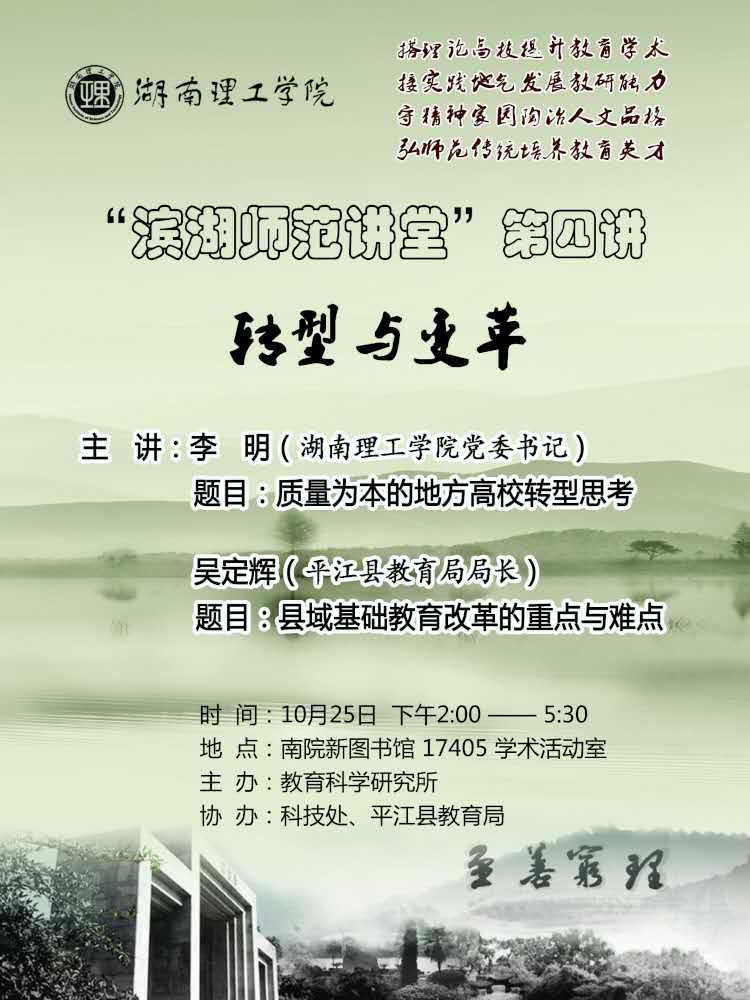 【学术报告预告】“滨湖师范讲堂”第四讲——转型与变革
