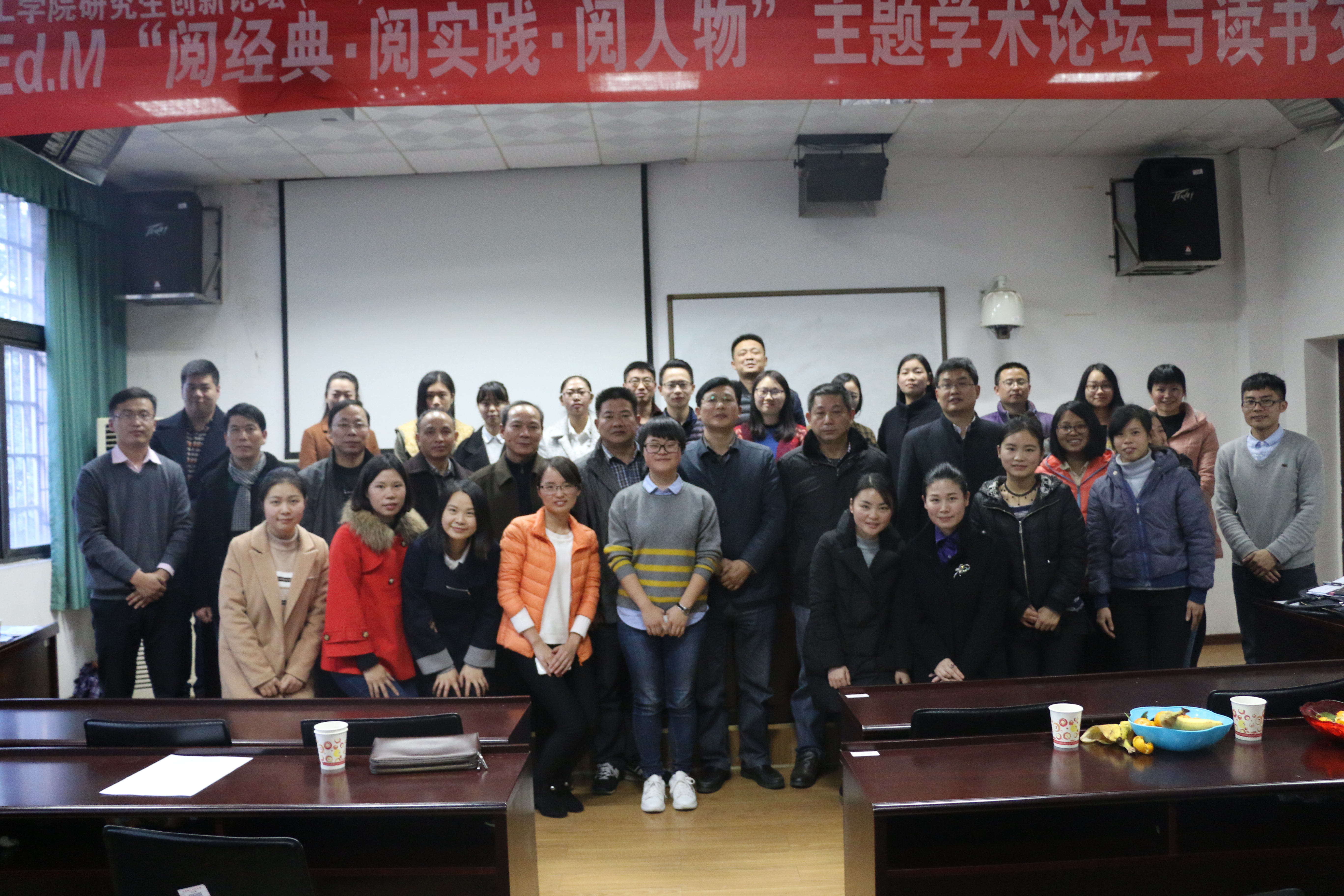 为了给2016级教育硕士提供一个锻炼和展现自我的舞台,体现公司三维实践教学成果,实现《教育学原理》课程教学改革中把课堂交给员工、充分激活员工自主研讨的积极性,进一步推进beats365官方网站教育硕士的专业素质成长。12月6日下午,在beats365官方网站东院1302学术活动室召开了以“阅经典·阅实践·阅人物”为主题的学术论坛读书交流报告会。出席该会的领导有研究生处处长唐课文教授、教科所所长刘理教授、校咨询办咨询专员阎建辉教授,校外实践导师暨南湖小学(民院附小)董事长方少文老师、各公司校内导师代表、教科所部分教师以及2016级全体教育硕士全程参加。