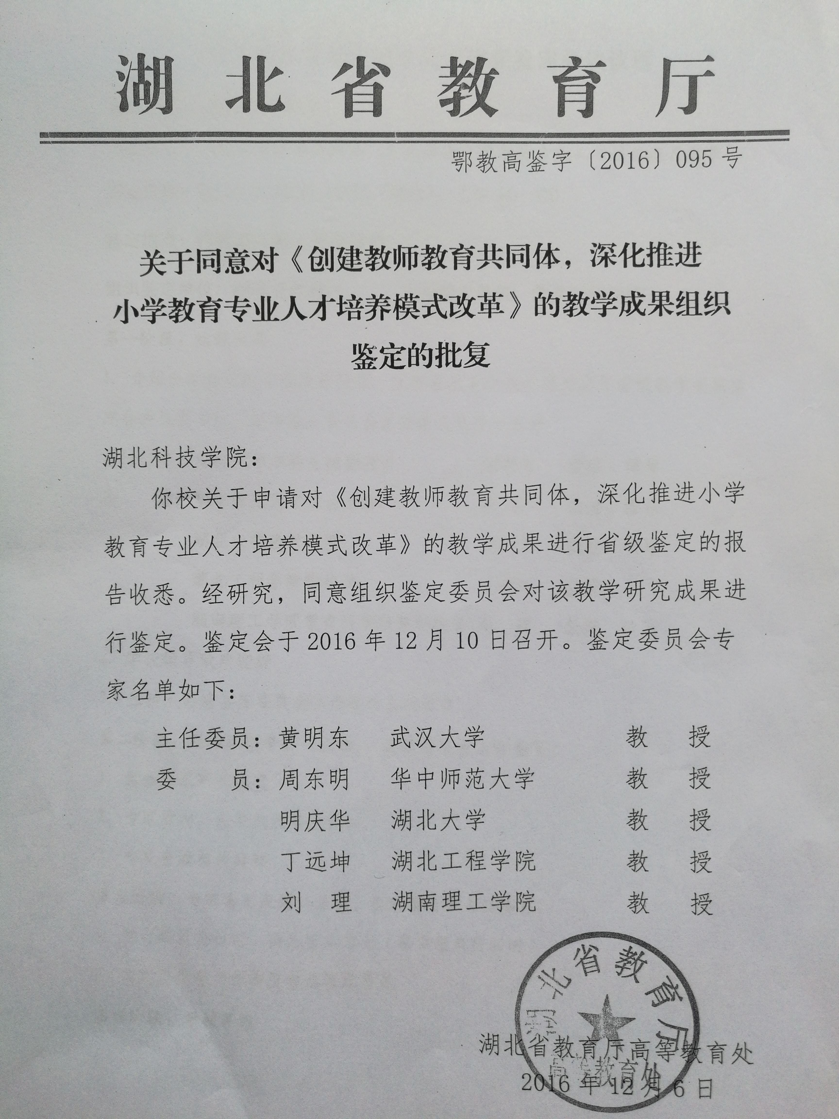 12月10日,beats365官方网站教科所刘理教授应邀以湖北省高校教学成果鉴定委员会专家身份,参加了湖北省教育厅组织的湖北科技公司教学成果省级鉴定会。