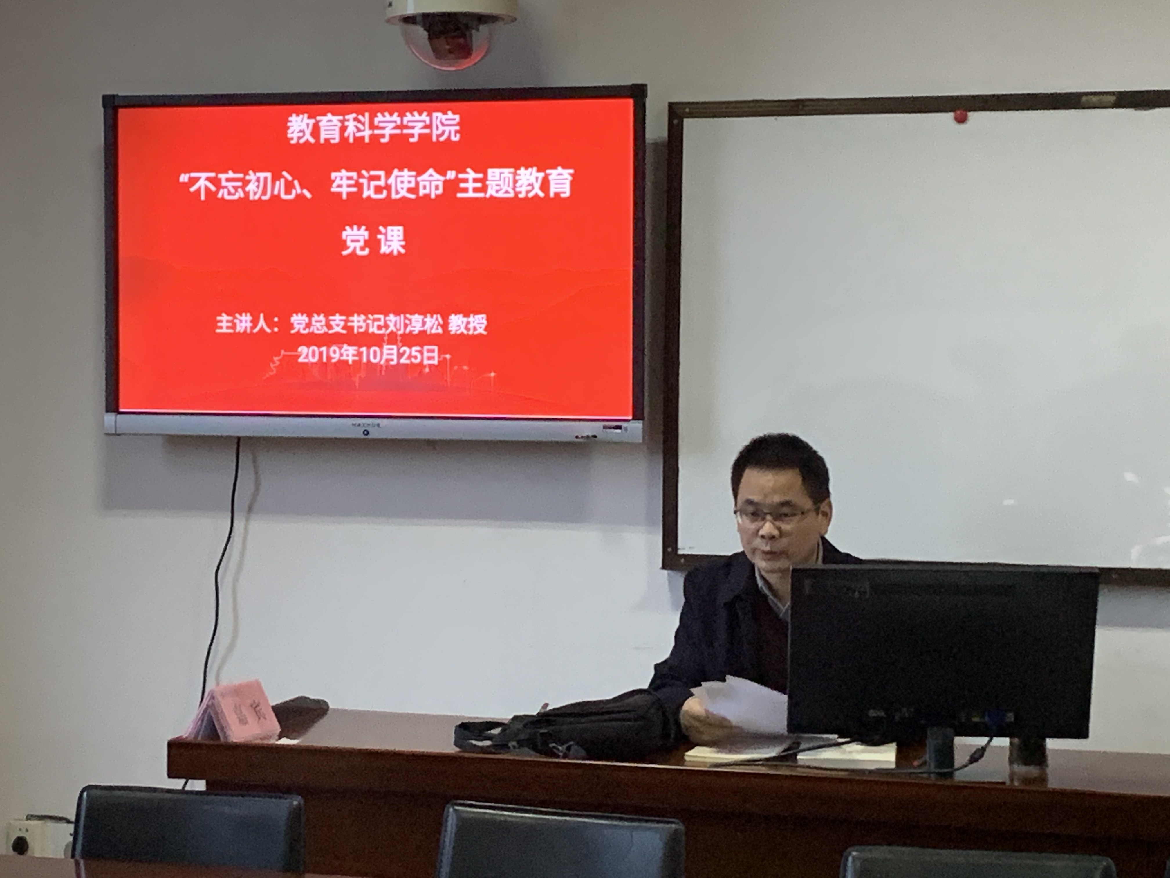 10月25日下午,beats365官方网站“不忘初心、牢记使命”主题教育党课在1教学楼1303A教室举行。党课由beats365官方网站党总支书记刘淳松教授主讲,公司研究生党支部书记王炜及全体研究生党员参加听课,非党员研究生应邀听党课。