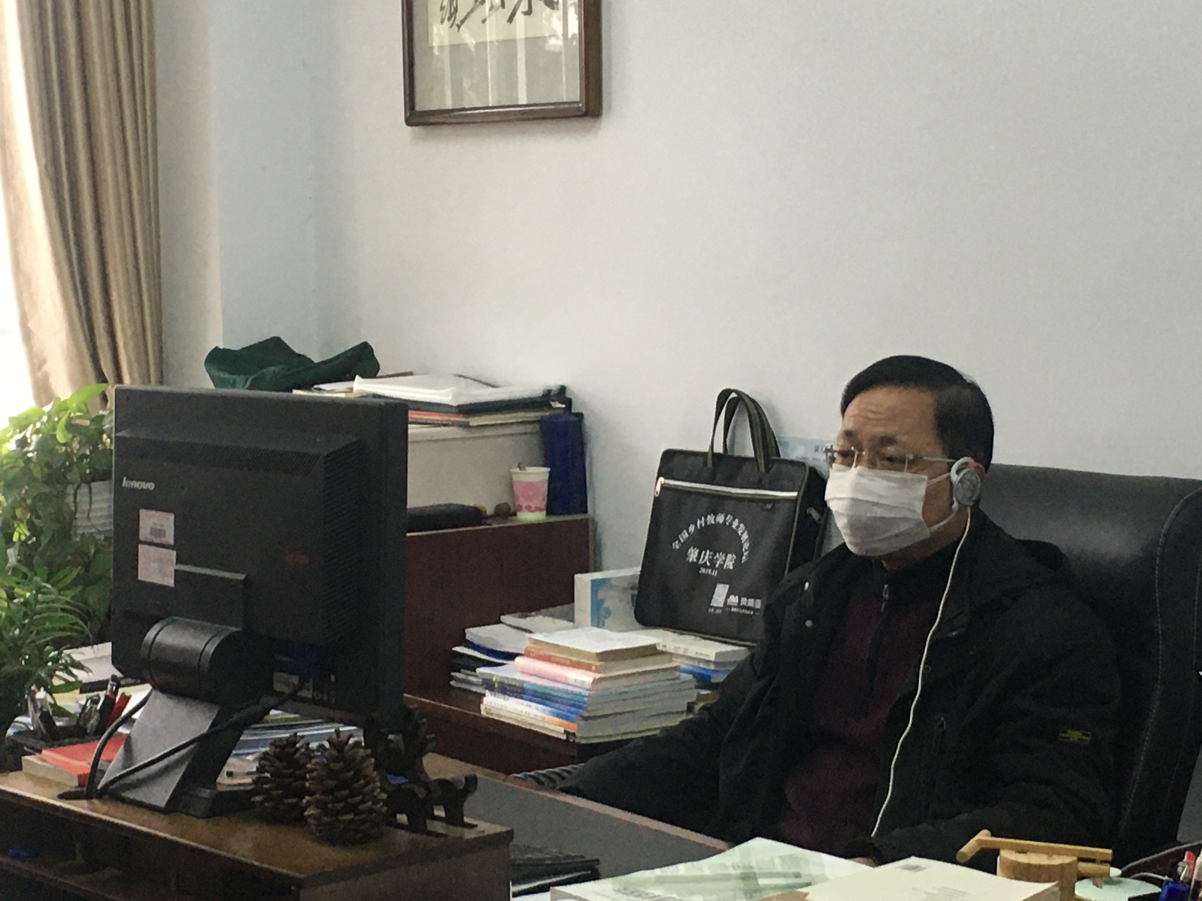beats365官方网站党总支书记刘淳松通过网络直播平台参加视频会议