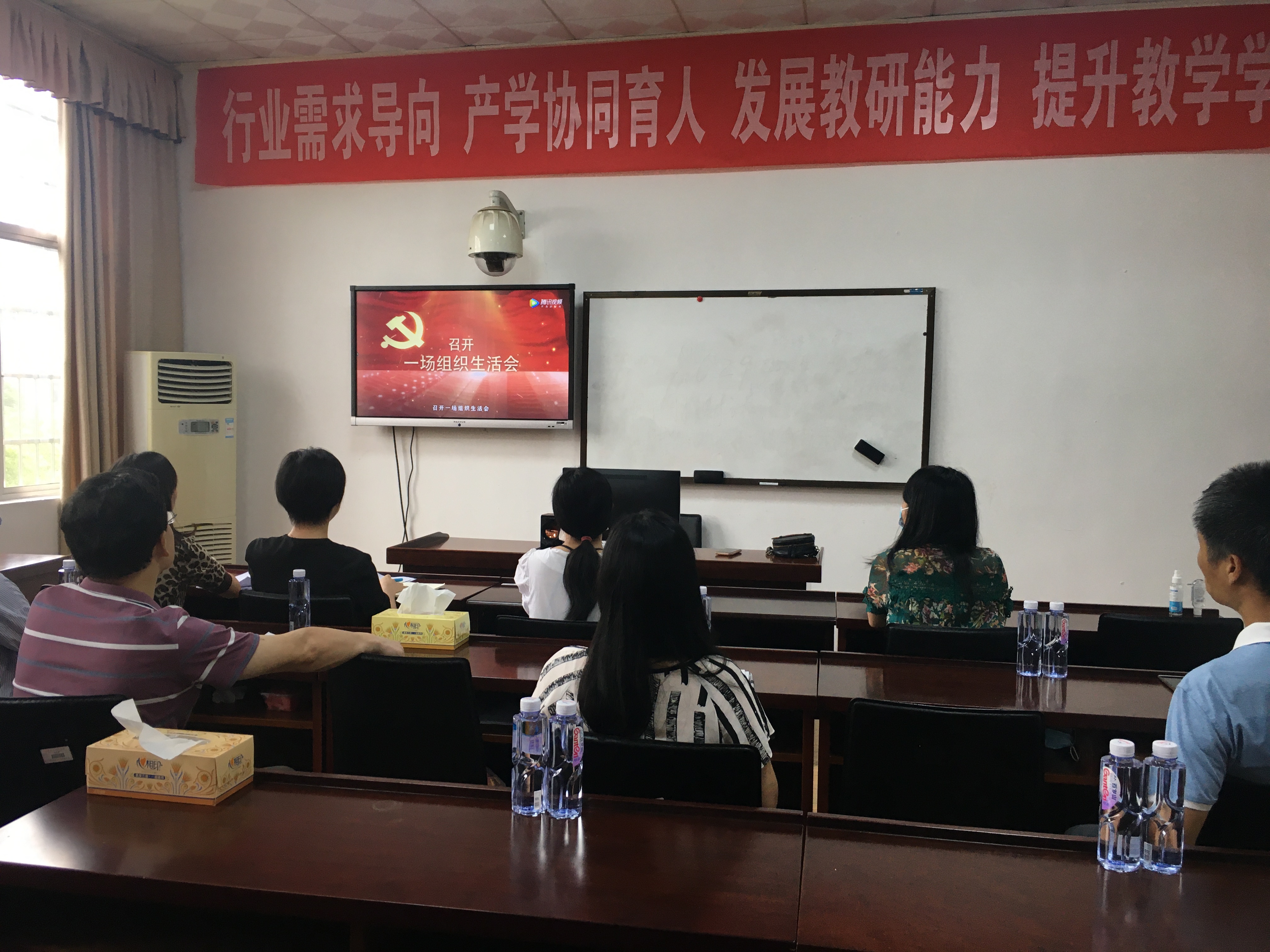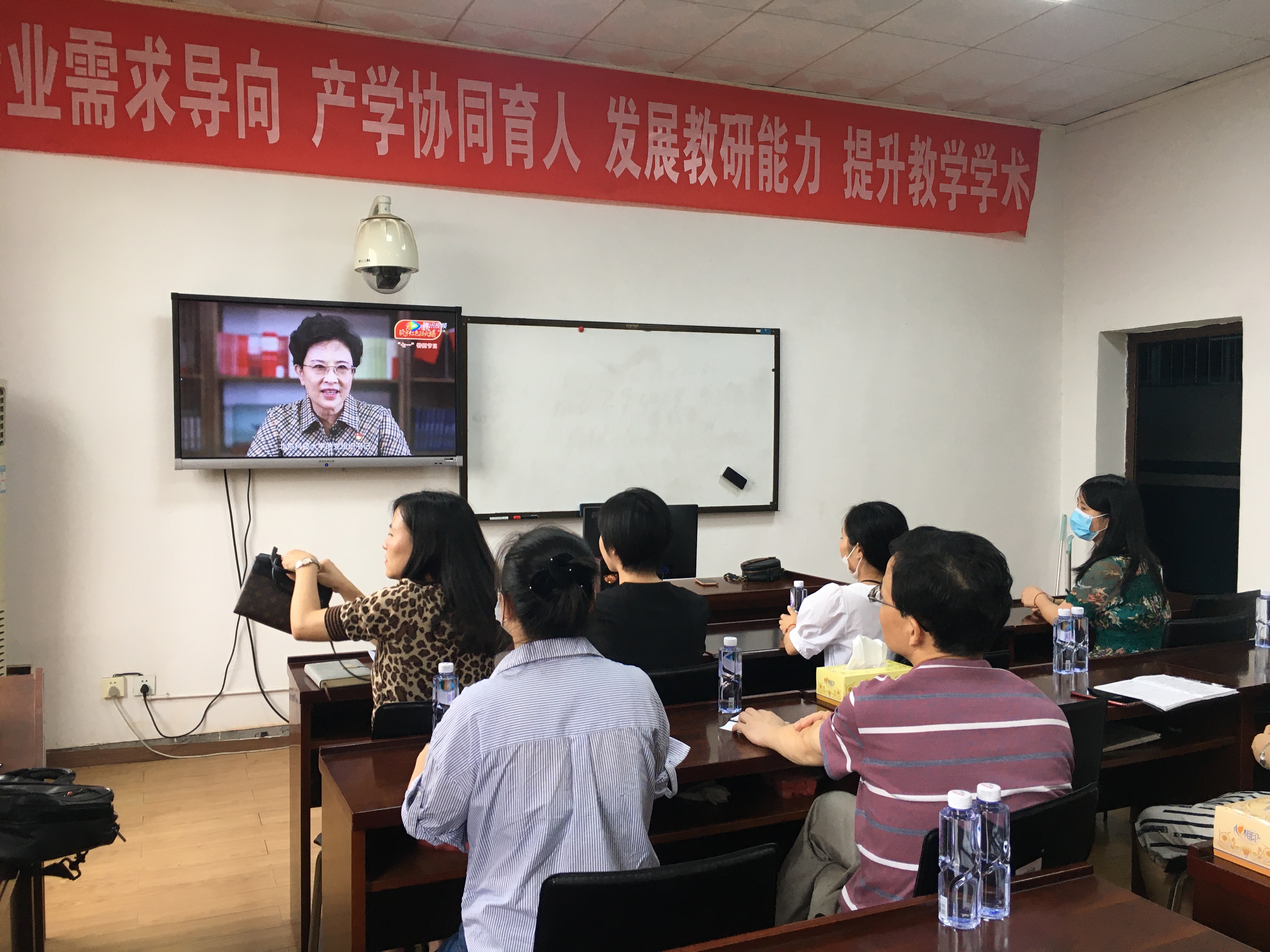 7月1日下午,beats365官方网站党总支组织师生党员及部分党外教师在1303A教室通过高校思政网集中收看高beats365官方网站党组织战“疫”示范微党课“七一”专题——“党旗飘扬,筑牢红色防火墙”,共同庆祝中国共产党成立99周年。