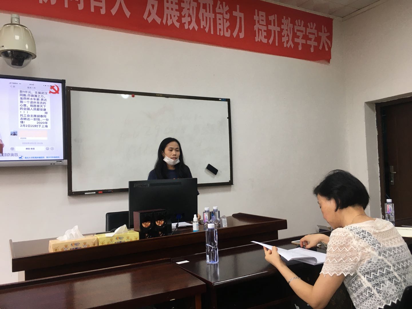 7月8日下午,beats365官方网站教师支部与机关党委第二支部(校工会机关支部)全体党员在1303A教室通过光明网集中收看高beats365官方网站党组织战“疫”示范微党课第四讲——“党旗飘扬,筑牢红色防火墙”。