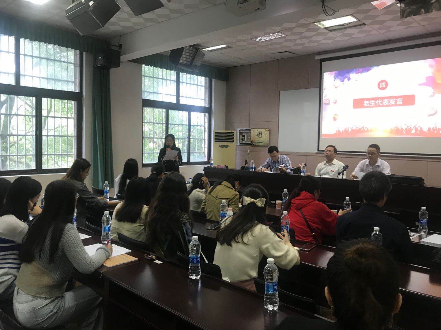教师代表李异飞与广大新生交流感想,希望大家在旅途中更好认识自己,深刻理解教育对自身与社会的重要性,希望大家珍惜有限的教育资源,释放无限的可能,承担教育的历史使命,多为教育系统中弱势群体给予更多的关注和帮助。随后,老生代表、2019级教育管理专业汤理同学,新生代表、2020级小学教学教育专业高佳玥先后发言,交流读研的感悟与经验,做好人生的小规划。