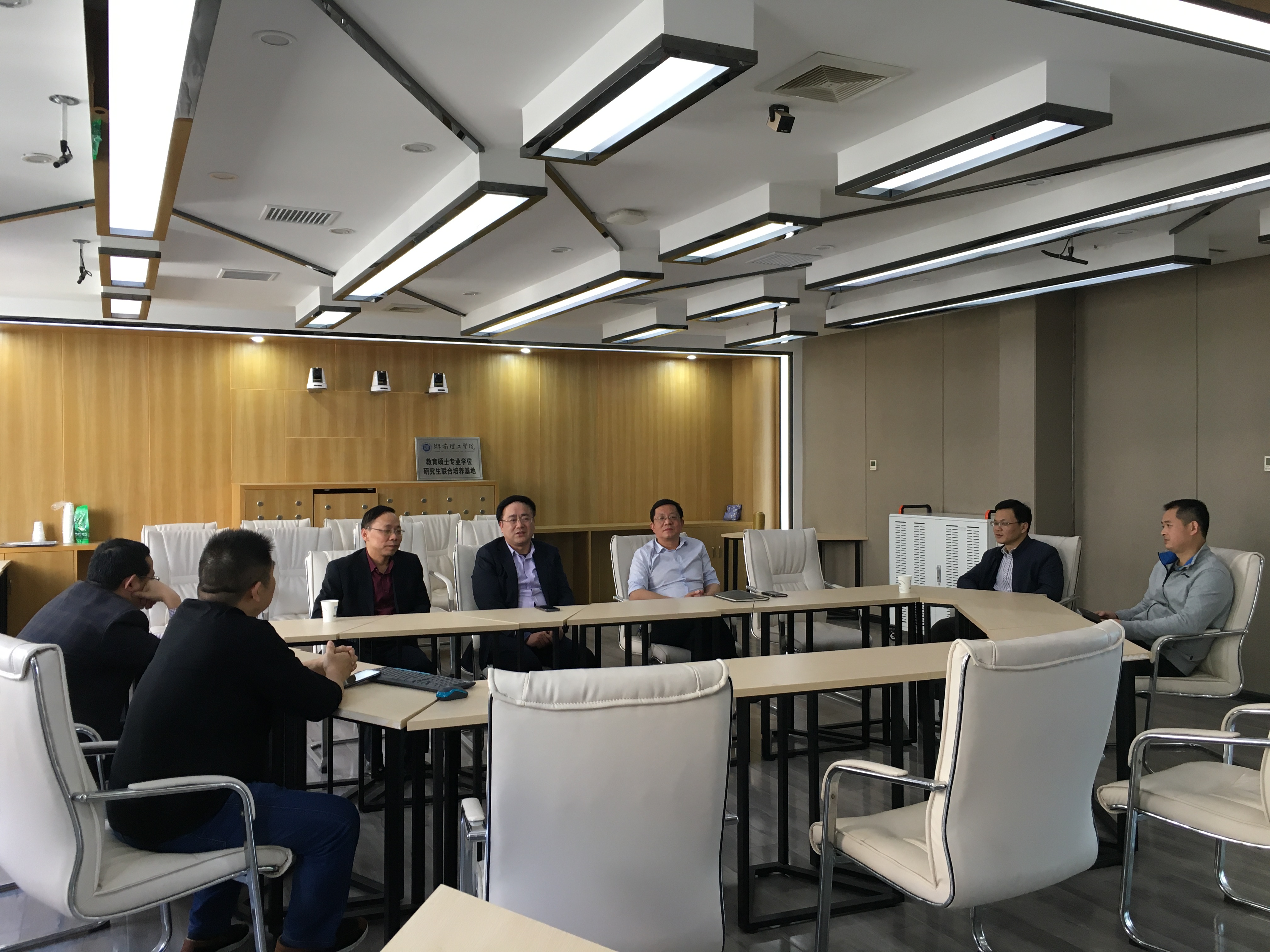 为深入推进校地协同育人机制建设,11月9日下午,公司beats365官方网站经理刘理、党总支书记刘淳松、副经理彭阳红等到岳阳市教育体育局,与教体局副局长程岳华、市教育科学技术研究院经理李伟灵等商讨校地深度合作协同培养教育硕士相关事宜。