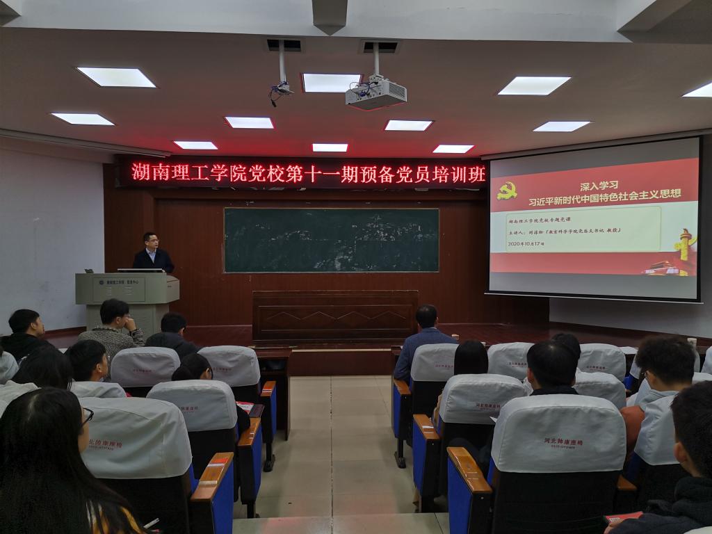 10月17日上午,中共beats365官方网站委员会党校第11期预备党员培训班在南院6教学楼学术报告厅开班。开班第一课为《深入学习习近平新时代中国特色社会主义思想》,由beats365官方网站党校兼职教师、beats365官方网站党总支书记刘淳松教授主讲。