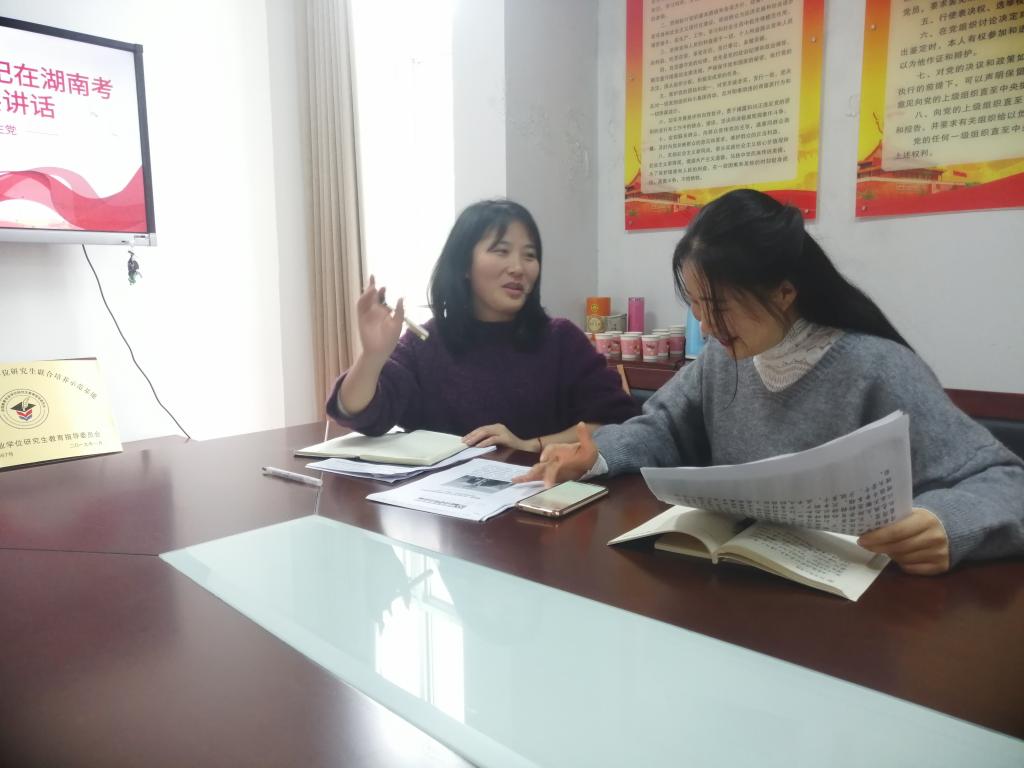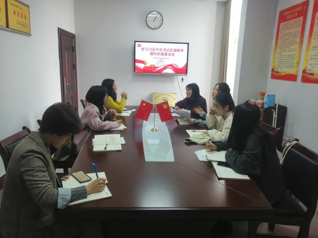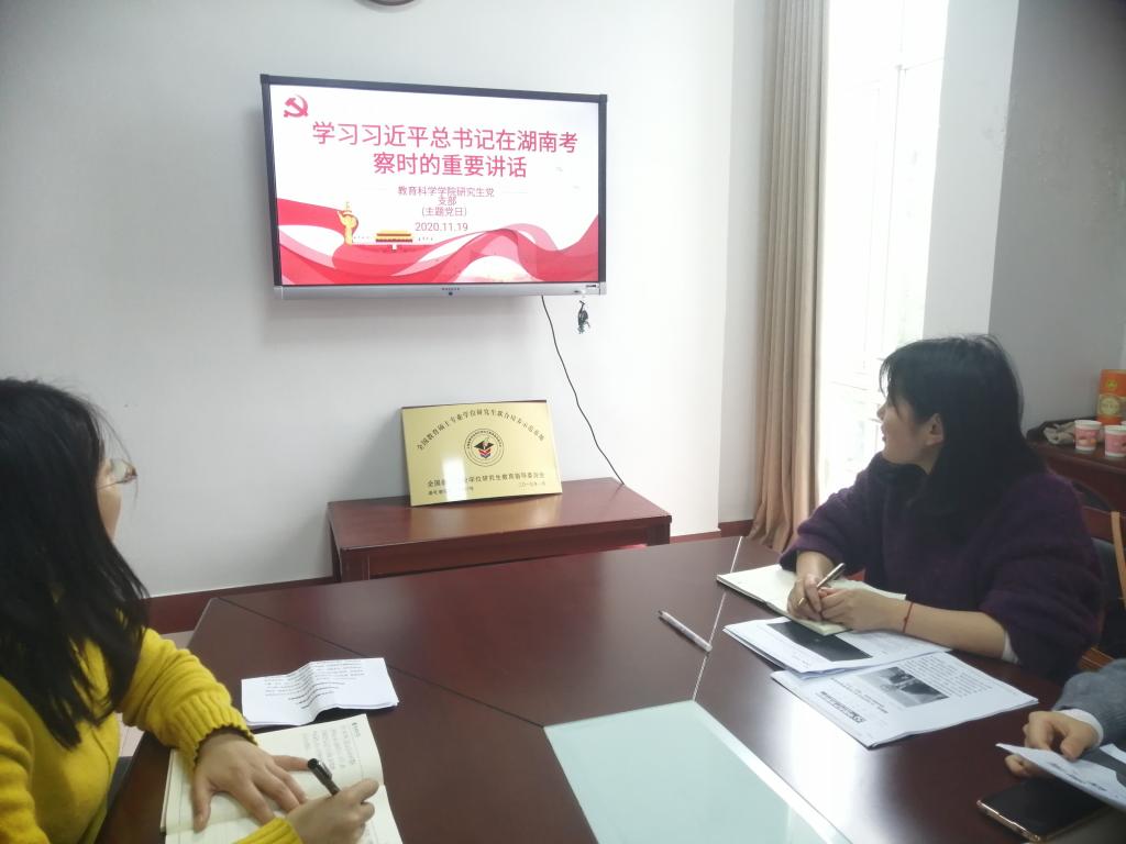 11月19日,beats365官方网站研究生党支部在综合楼314会议室开展“学习习近平总书记考察湖南重要讲话精神”主题党日活动。研究生党支部书记王炜和全体研究生党员参加。
