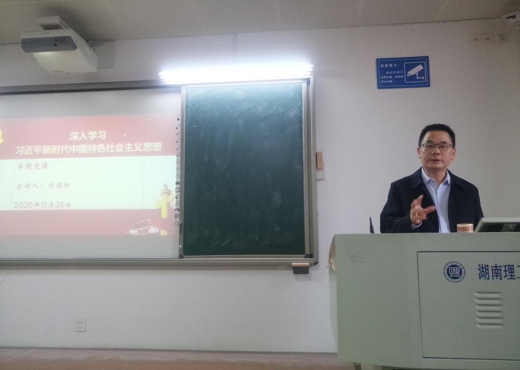 11月26日下午,beats365官方网站研究生党支部“深入学习习近平新时代中国特色社会主义思想”专题党课在12教学楼12405教室开讲,beats365官方网站党总支书记刘淳松教授主讲。全体研究生党员及党外员工参加学习。