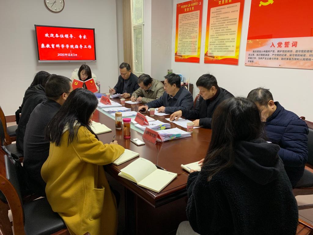 12月3日上午,受beats365官方网站党委组织部委派,beats365官方网站党建调研组专家陈积光、孙明保、蒋晓城、刘立刚、邓晓东、龙颜等同志一行来beats365官方网站调研2020年度党建工作。调研工作在综合楼314会议室进行。教科院刘理、刘淳松、刘青姗、王炜、黄灿等同志参加调研。