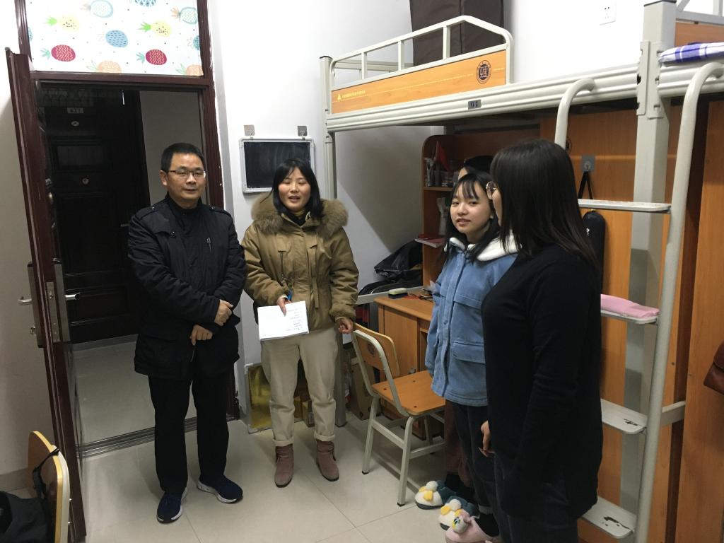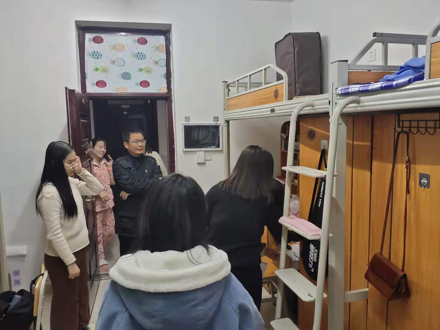 晚上6时,刘淳松、王炜走进公司每一间研究生寝室,与员工交流,了解员工生活学习情况;对寝室消防安全进行全面检查,并针对同学们日常生活中遇到的问题给予建议。刘淳松强调,寝室绝对杜绝使用违规电器,同学们要排查各类安全隐患,保证用电安全。王炜希望同学们养成良好的生活习惯,提高寝室安全意识、卫生意识,共同创造文明、和谐的寝室环境。