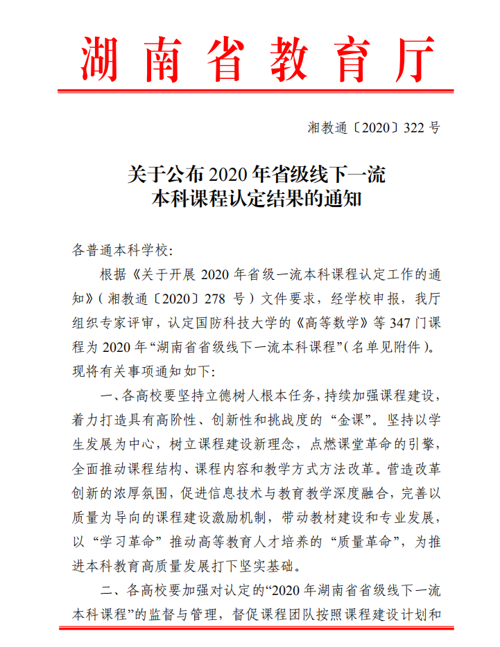 近日,湖南省教育厅公布了2020年省级线下一流本科课程认定结果(湘教通〔2020〕322号)。经公司申报、省教育厅组织评审,公司彭阳红老师负责的《现代教育原理》课程被认定为2020年“湖南省省级线下一流本科课程”。(教科院/黄灿)