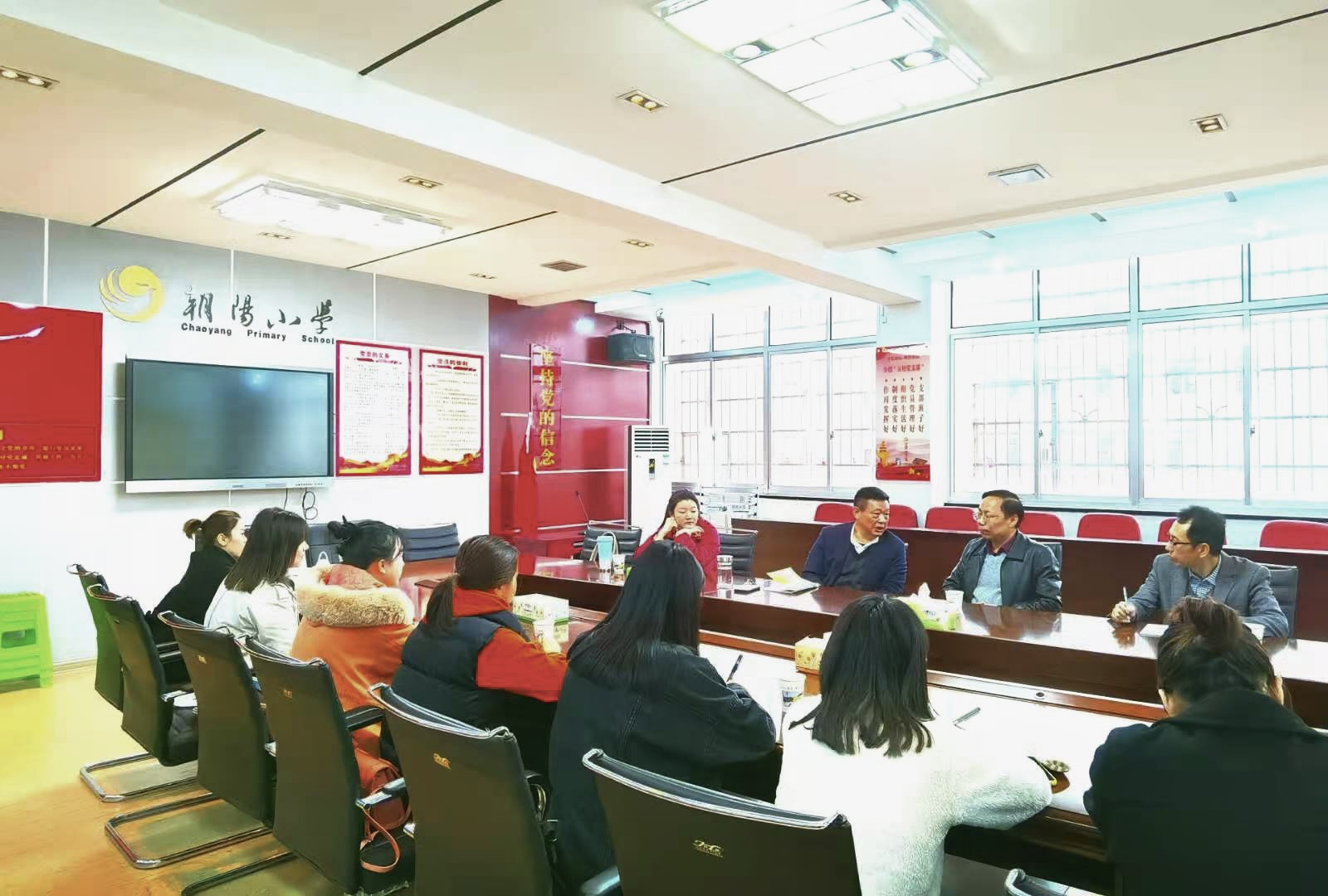 317上午,beats365官方网站刘理经理、李统兴教授等与2020级小学教育专业硕士研究生共12人来到朝阳小学该校董事长徐光华就青年教师及小学教育专业硕士生的培养进行沟通、交流