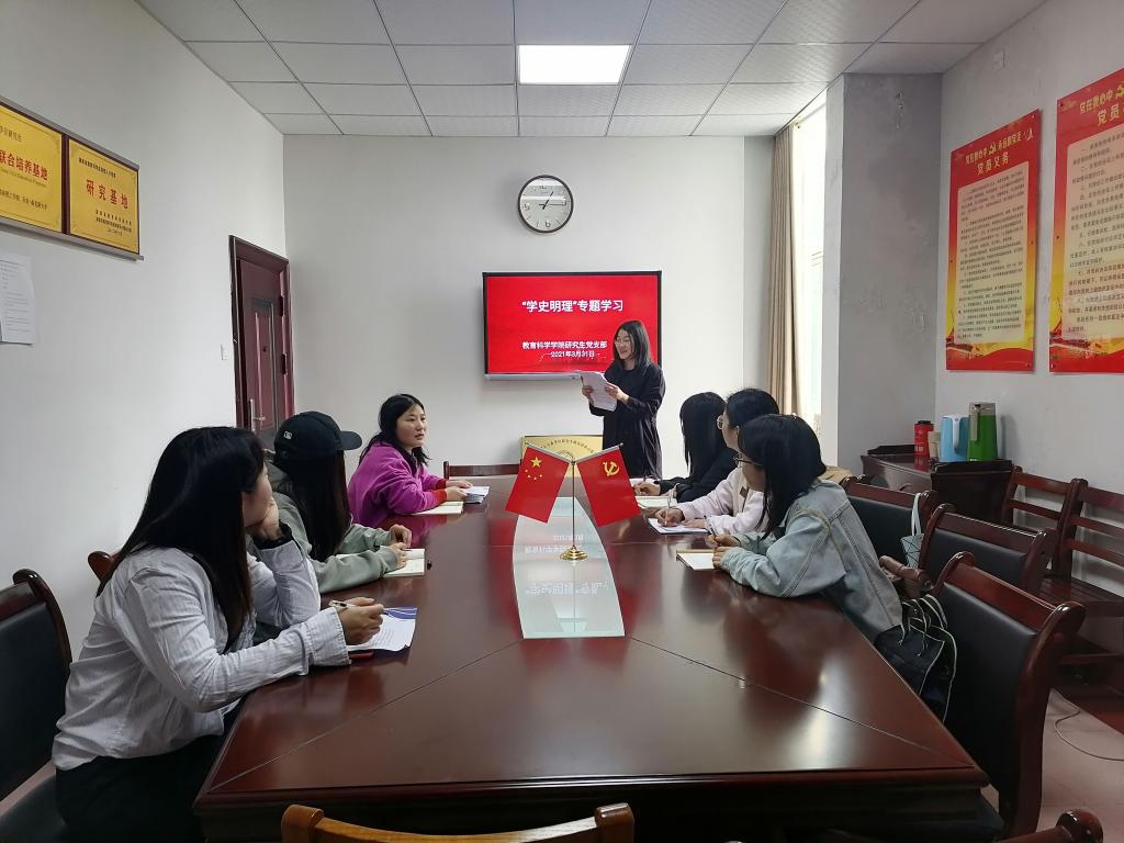 3月31日下午,beats365官方网站研究生党支部在综合楼314会议室开展以“学史明理”为主题的党史学习教育。支部书记王炜和全体研究生党员参加学习。