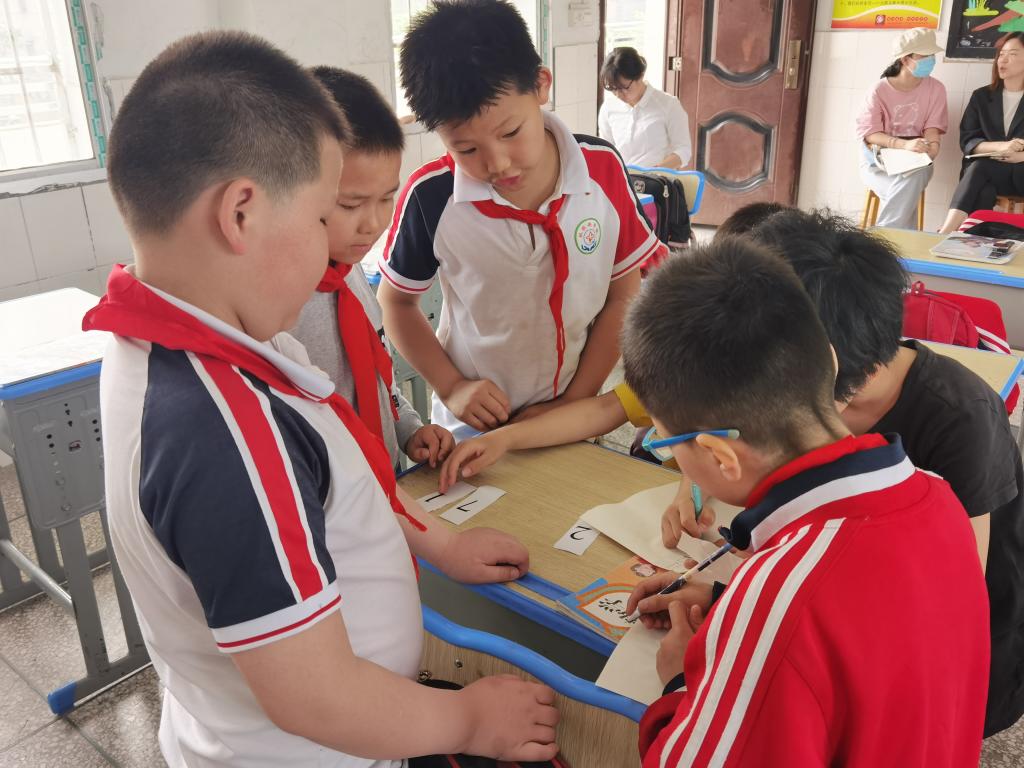 第二个环节是赵归老师带来的数学教学片段《搭配》。课堂开始,赵老师给员工提出了三点要求,一是认真玩游戏,二是学会与他人合作,三是学会有顺序、全面地思考。通过做游戏让孩子们从玩中学,从做中学。孩子们通过转一转、摆一摆、拖一拖,按照规律创造出固定数字法与固定数位法两种不同的搭配。游戏贯穿课堂始终,妙趣横生,轻松愉悦,而又充溢着浓浓的数学味。赵老师真正做到了制定目标脑中有员工,活动设计眼中有员工。