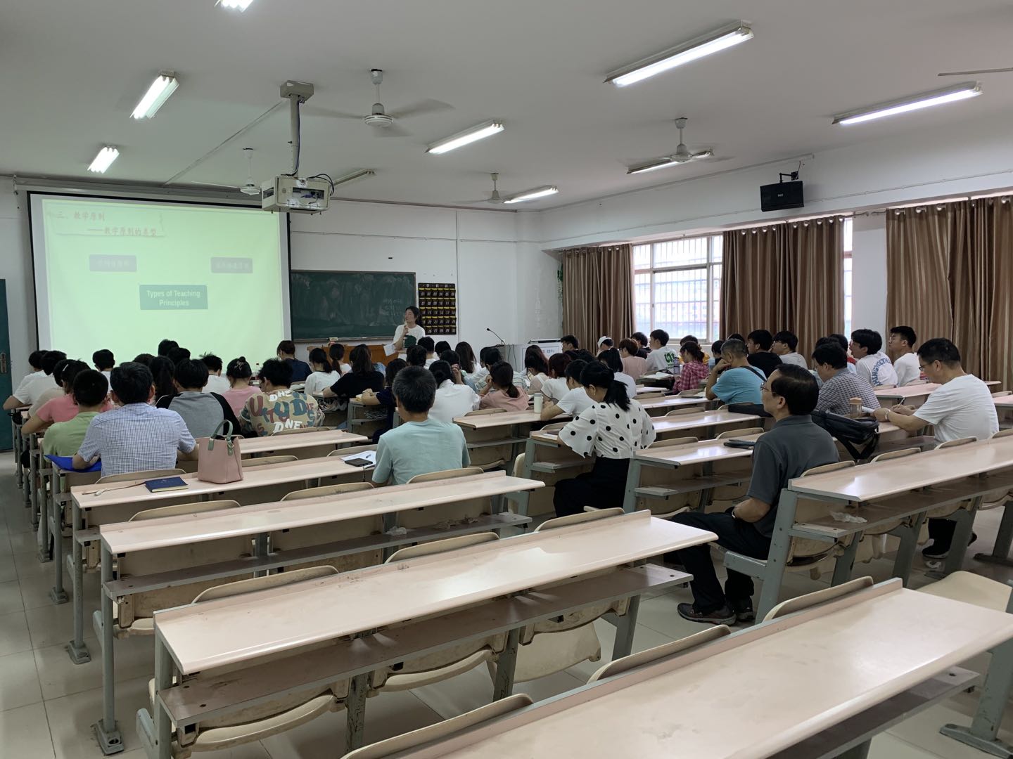 罗溢枫老师现场为大家展示了一堂公开课,然后汇报了教学设计思路。考核小组充分肯定了罗溢枫老师的优点,一致认为其教学态度端正、基本功扎实、语言流畅、逻辑清晰,同时,大家也从进一步优化案例设计、完善提问环节等方面提出了一些针对性的意见和建议。(撰稿/黄灿)