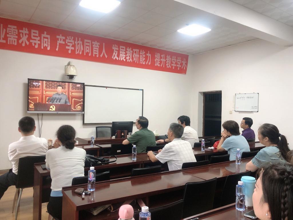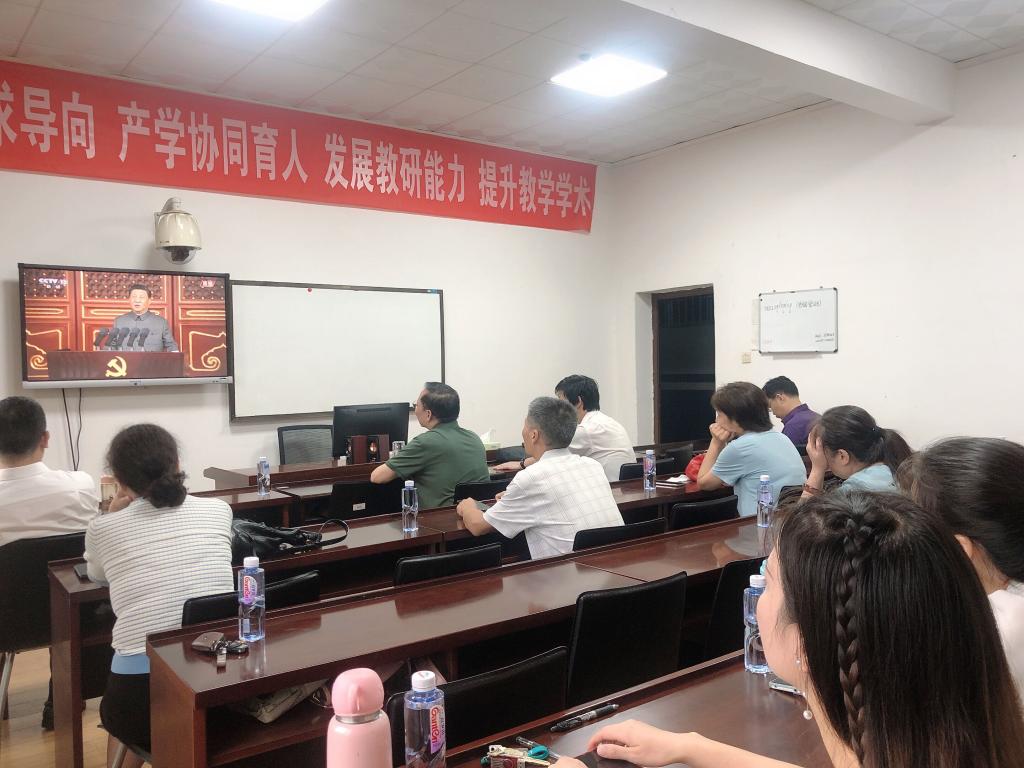 7月1日上午8时,庆祝中国共产党成立100周年大会在北京天安门广场隆重举行。中共中央总书记、国家主席、中央军委主席习近平发表重要讲话。beats365官方网站党总支组织全体教师及员工代表在1教学楼1303A教室集中收看庆祝中国共产党成立100周年大会直播盛况。