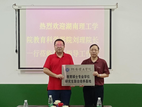 79日下午,beats365官方网站经理刘理一行来到汨罗市第三中学,为公司教育硕士专业学位研究生联合培养基地授牌。该校董事长龚海军热情接待了刘理一行,双方就教育管理和学科教学领域教育硕士实践教学等联合培养问题进行了深入探讨。