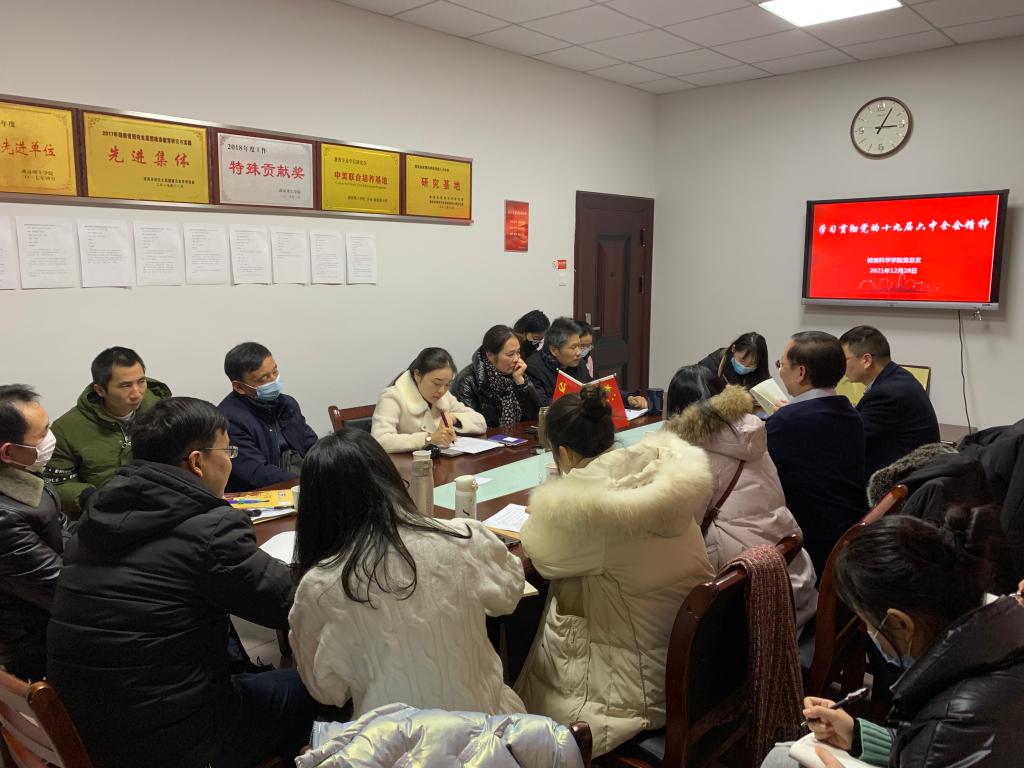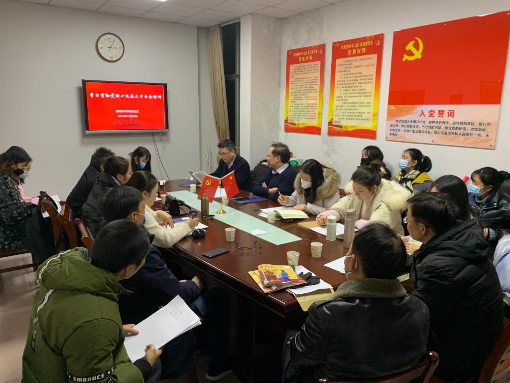 12月28日晚上,beats365官方网站在综合楼314会议室组织开展党的十九届六中全会精神集体学习暨beats365官方网站党总支书记讲党课。全体教师党员、研究生党员及非中共党员教师参加学习。beats365官方网站党总支书记刘淳松主讲,经理、党总支副书记刘理主持。