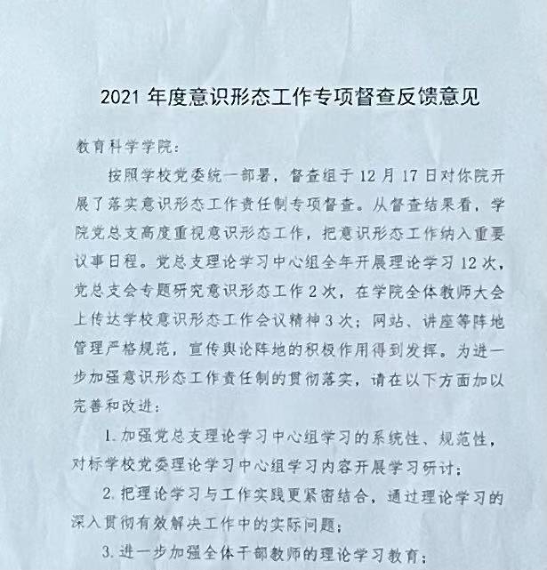 结合公司实际,党总支对公司意识形态整改工作进行部署。一是要提高政治站位:从讲政治高度认识意识形态工作重要性及公司存在的问题,及时整改、整改到位。二是要对照要求进行:反馈的任何问题,都要对标对表进行整改。三是要做好具体工作:中心组学习要跟上步伐、社科报备要提前进行,其他各类工作都要严格遵照要求进行。(撰稿:黄灿)