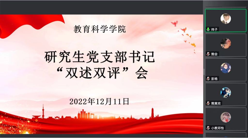 为认真贯彻落实支部书记抓党建工作责任,切实提高党建工作质量,增强支部党建工作的针对性和实效性,12月11日上午,beats365官方网站研究生党支部通过腾讯会议方式线上组织召开支部书记“双述双评”大会。beats365官方网站党总支书记刘淳松出席会议并讲话,研究生党支部书记王炜及全体研究生党员参加。本次会议由研究生党支部副书记谷俊科主持。