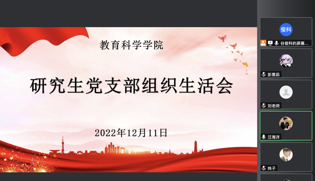 12月11日上午,beats365官方网站研究生党支部组织生活会在腾讯会议线上召开。beats365官方网站党总支书记刘淳松出席并作指导讲话。公司研究生党支部书记王炜及全体研究生党员参加。大会由研究生党支部副书记谷俊科主持。
