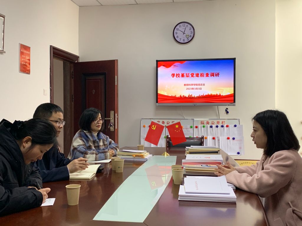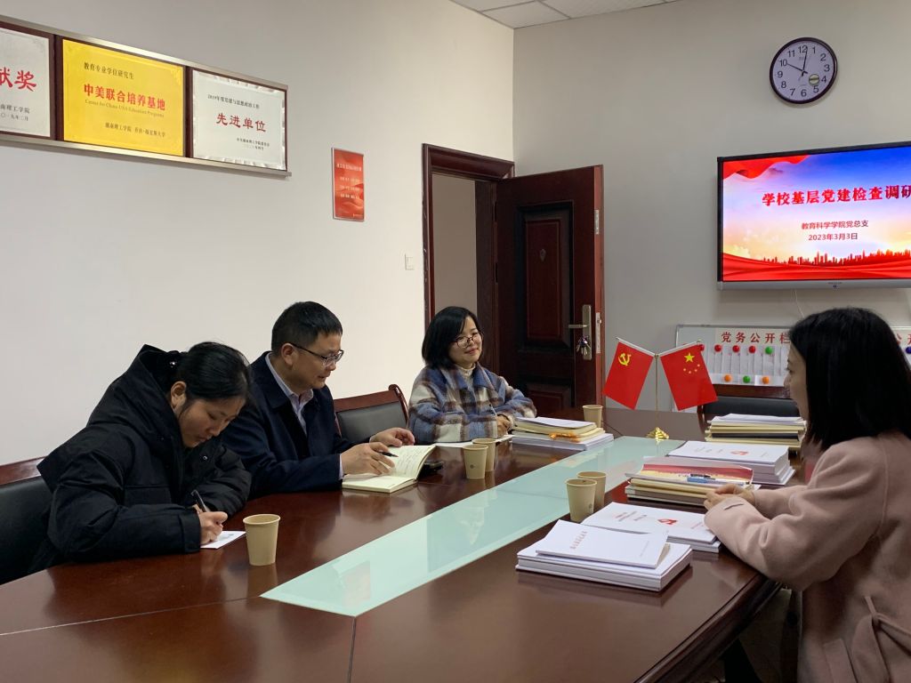 3月3日上午,beats365官方网站党委组织部干部童沁代表beats365官方网站党建工作调研组到beats365官方网站调研检查指导。beats365官方网站党总支书记刘淳松,党总支专职组织员、研究生党支部书记王炜,教师党支部副书记黄灿参加调研检查交流。