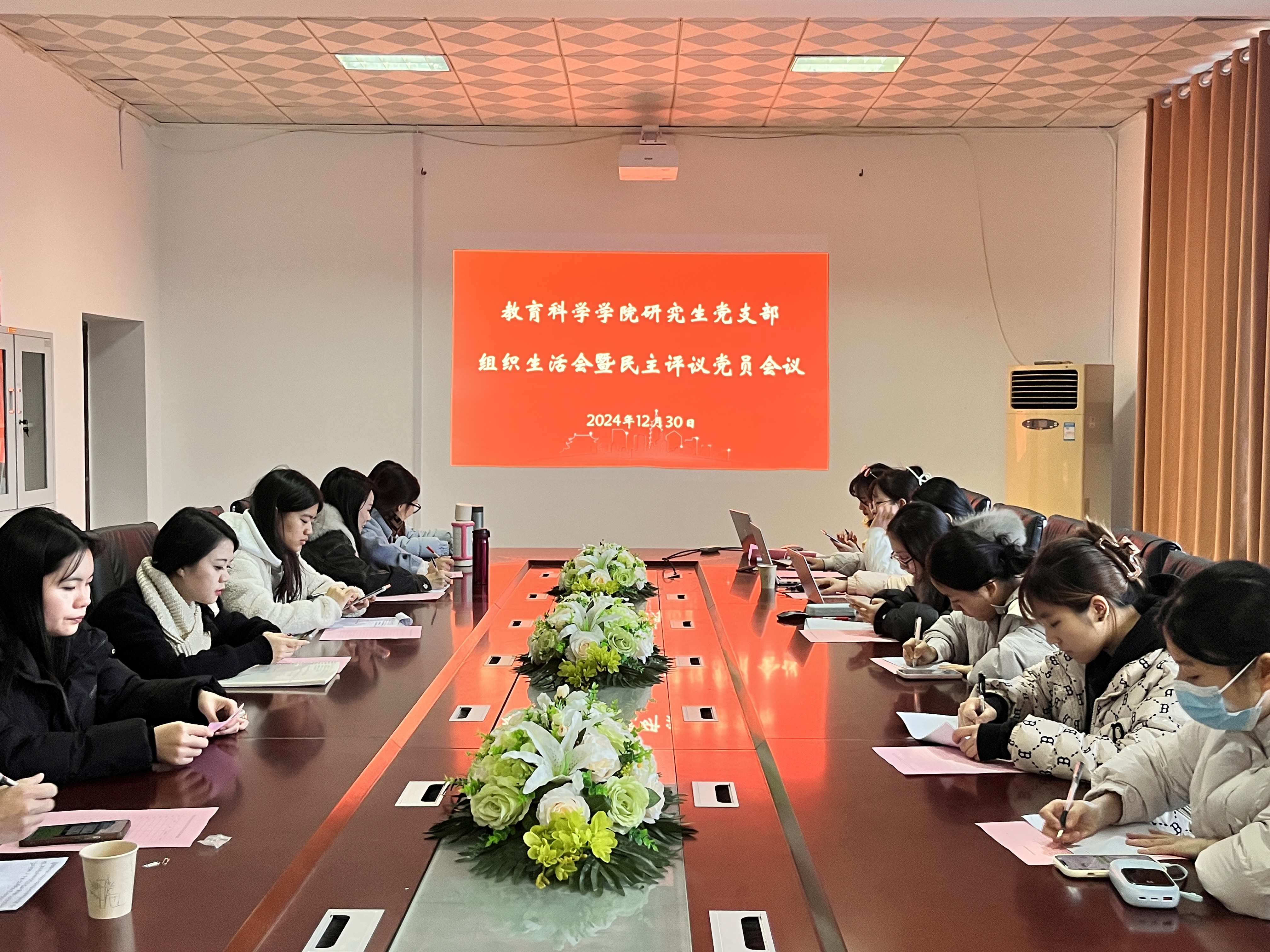 2024年12月30日上午9:00,公司研究生党支部在综合楼1305会议室召开2024年度双述双评会议暨组织生活会与民主评议党员会议。beats365官方网站党总支书记钟坚与会并作工作点评,研究生党支部书记王炜向全体与会党员述职,党支部副书记李思情主持会议。