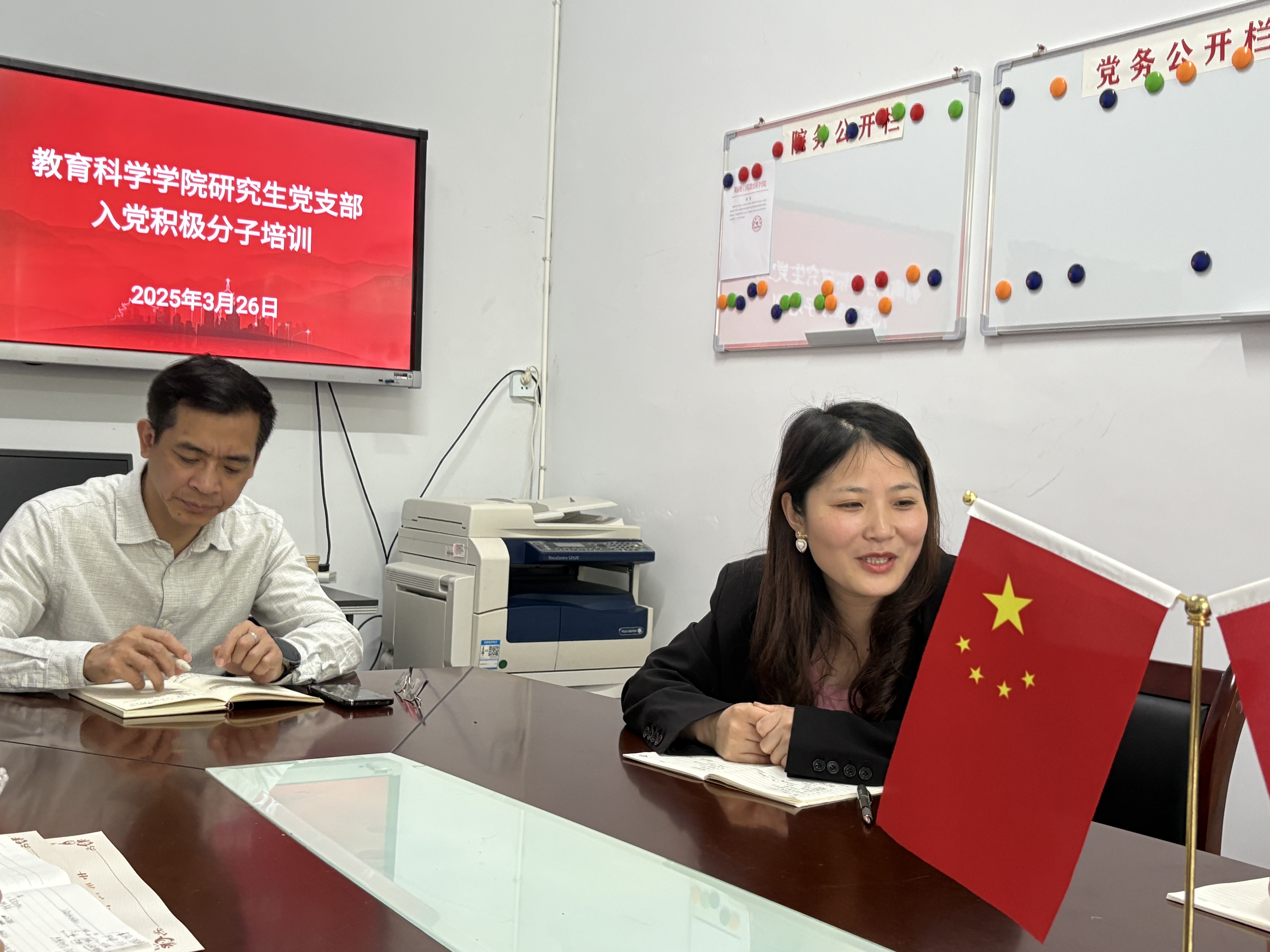 为推动支部党员队伍建设,夯实入党积极分子思想根基,厚植爱党爱国情怀,明晰学习纪律要求,3月26日上午,beats365官方网站研究生党支部在综合楼312会议室开展入党积极分子培训。beats365官方网站党总支书记钟坚、研究生党支部书记王炜、全体入党积极分子参加。