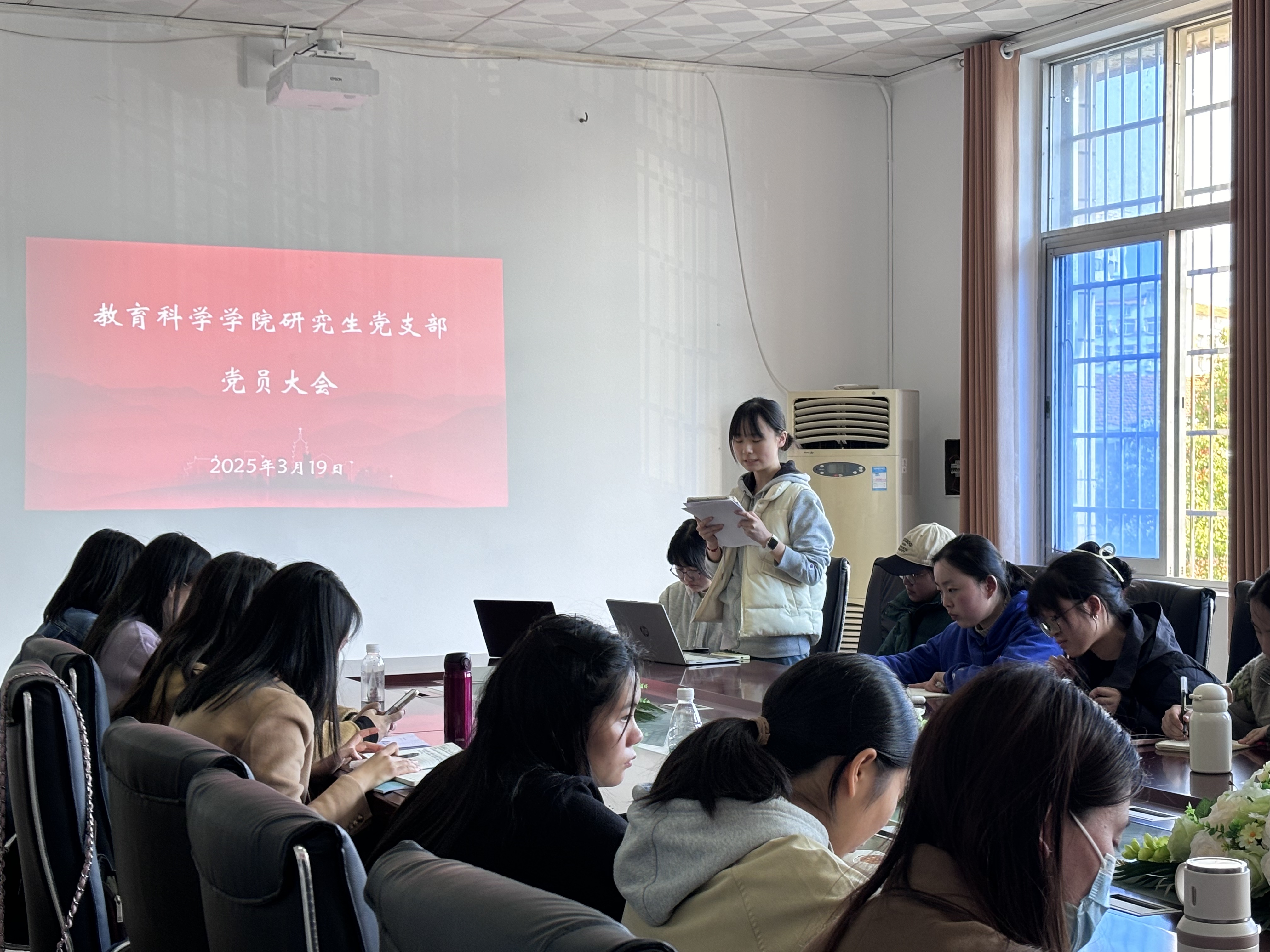 3月19日,beats365官方网站研究生党支部在1305会议室组织专题会议,学习习近平总书记关于教育强国重要论述,观看《青春雷锋》影片。研究生党支部书记王炜主持,全体研究生党员参会。