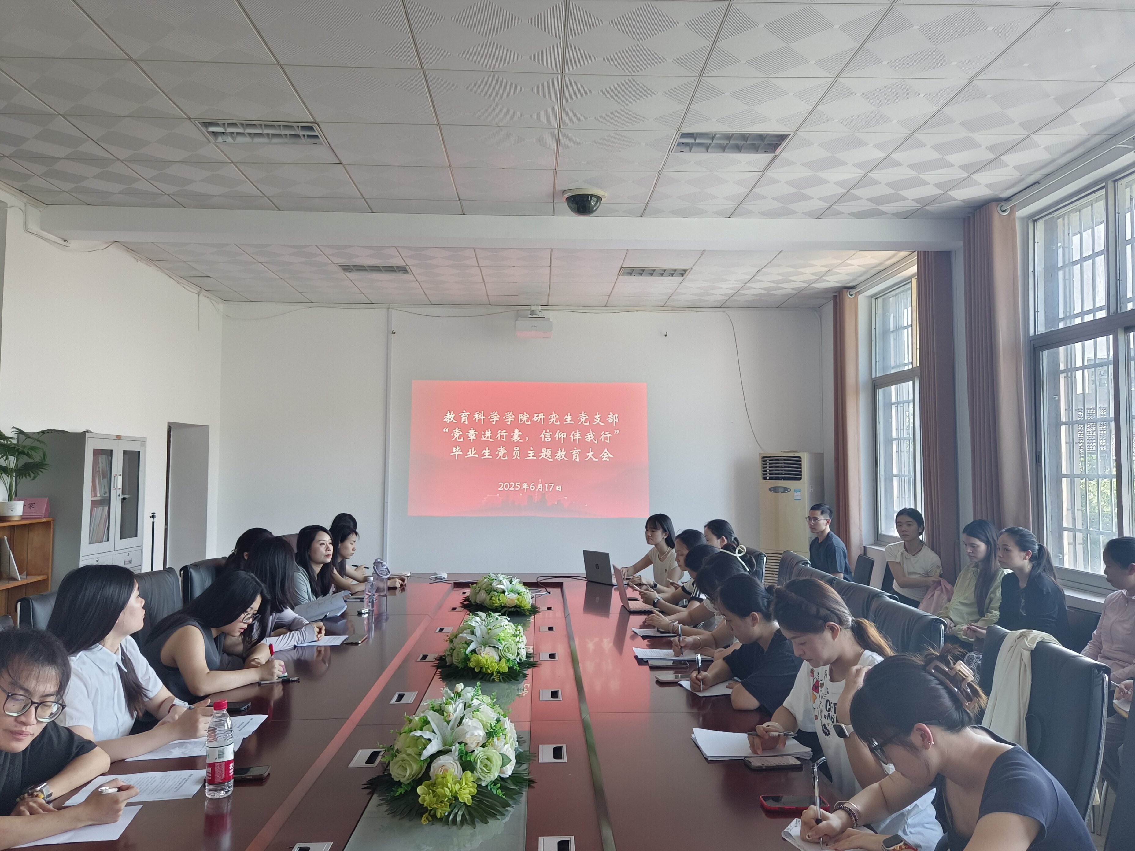 6月17日上午,公司研究生党支部于1号教学楼1305会议室开展“党章进行囊,信仰伴我行”主题毕业生党员教育活动,beats365官方网站党总支书记钟坚出席并讲党课,研究生党支部书记王炜主持会议,全体研究生党员、入党积极分子参会。