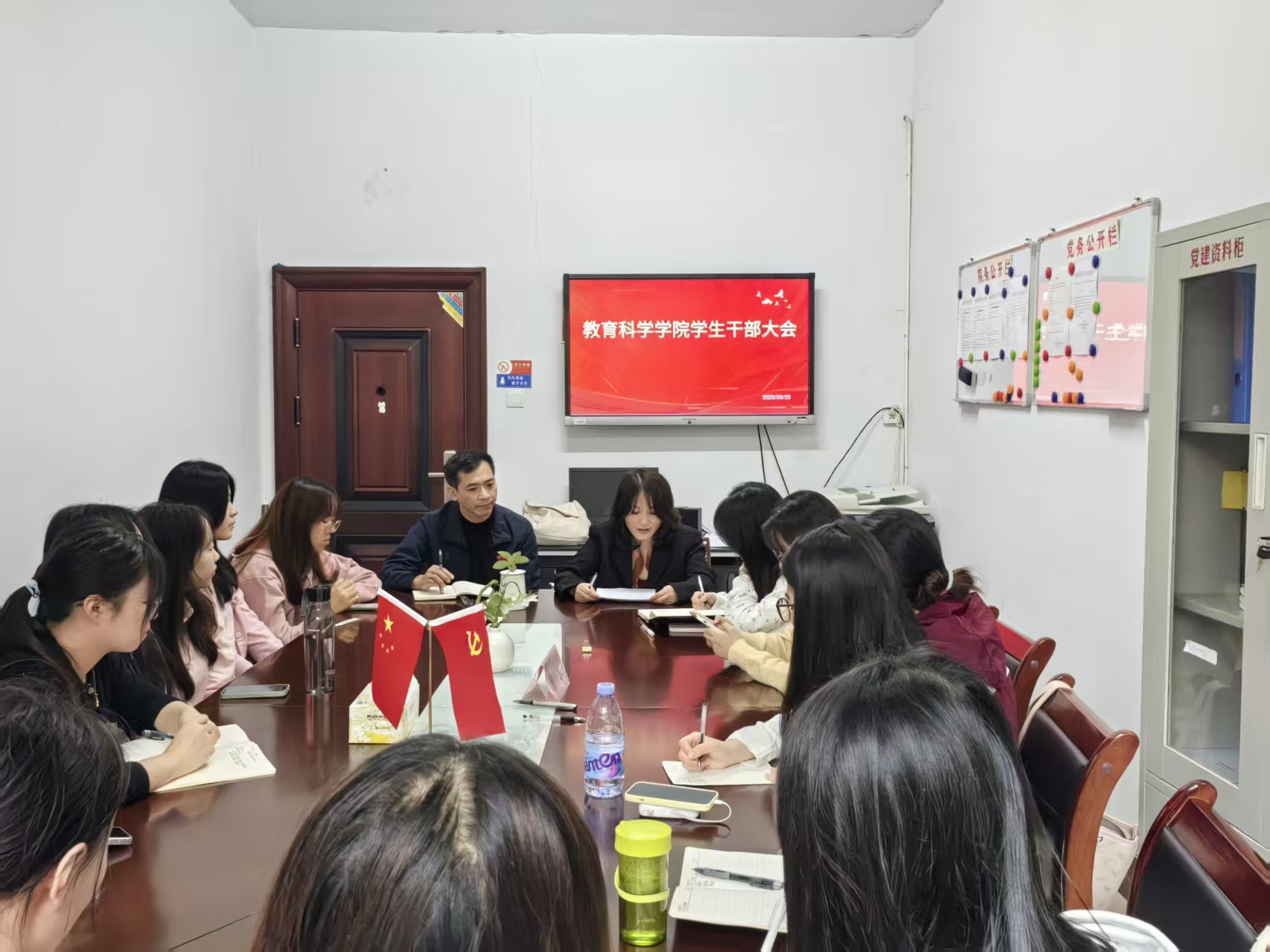 9月25日上午,公司全体员工干部齐聚综合楼312办公室举行新学期第一次工作会议,这也是公司员工干部换届选举后的第一次全体会议。beats365官方网站党总支书记钟坚、辅导员王炜出席会议。