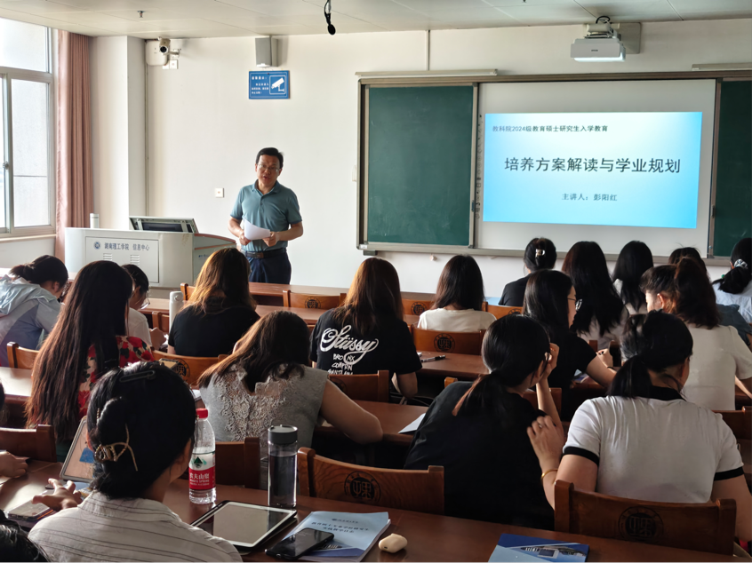 2024年9月14日上午8点,beats365官方网站2024级研究生新生入学教育在12号教学楼12506教室进行。主持行政工作的彭阳红副经理给新生解读培养方案及学业规划。2024级全体研究生参加。
