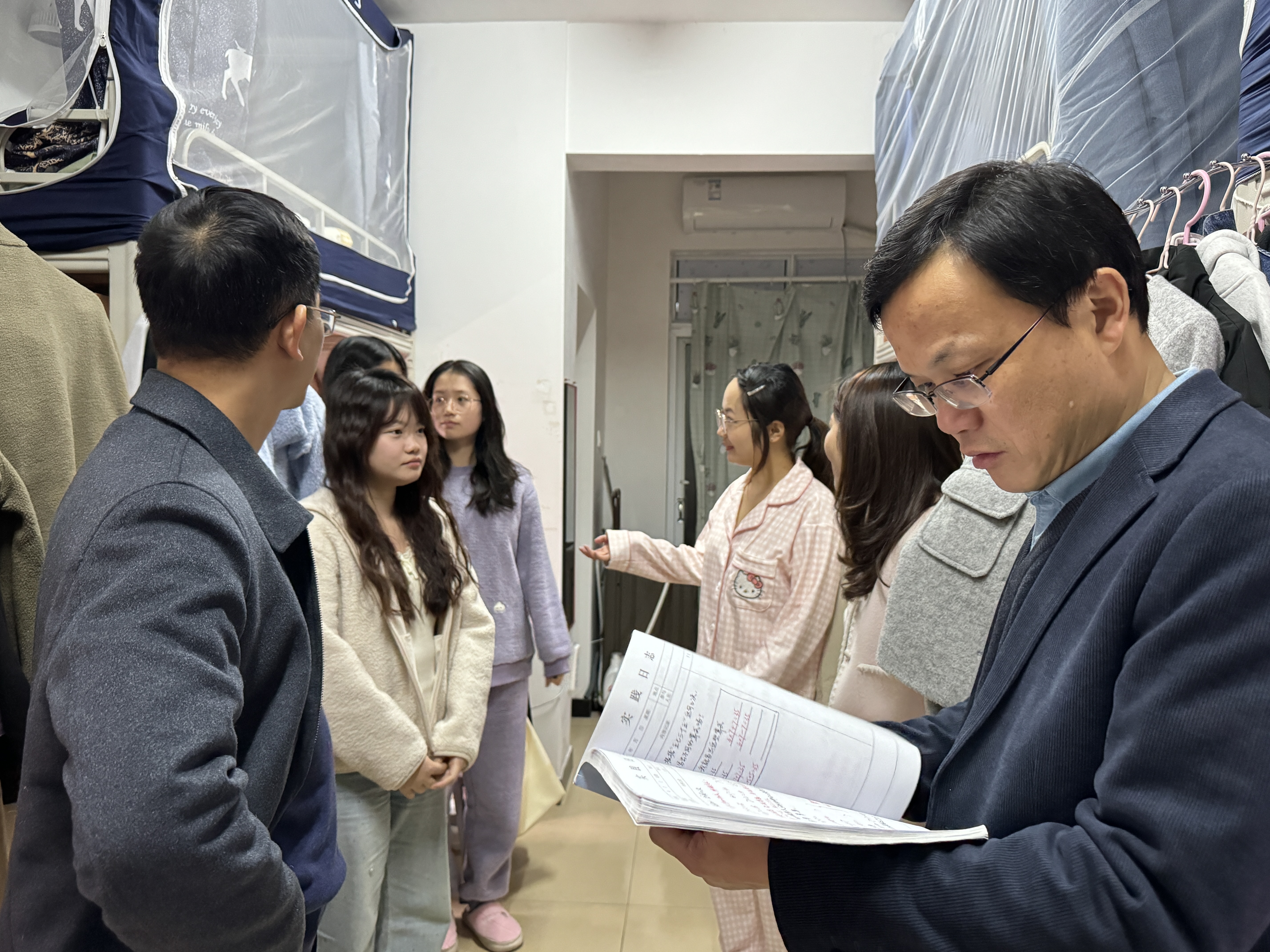 11月27日晚,beats365官方网站全体党政班子成员钟坚、彭阳红、隋幸华、赖颖慧、洪冬美和研究生党支部书记王炜一行6人遍访公司研究生宿舍,排查安全隐患,了解研究生学习生活状况。