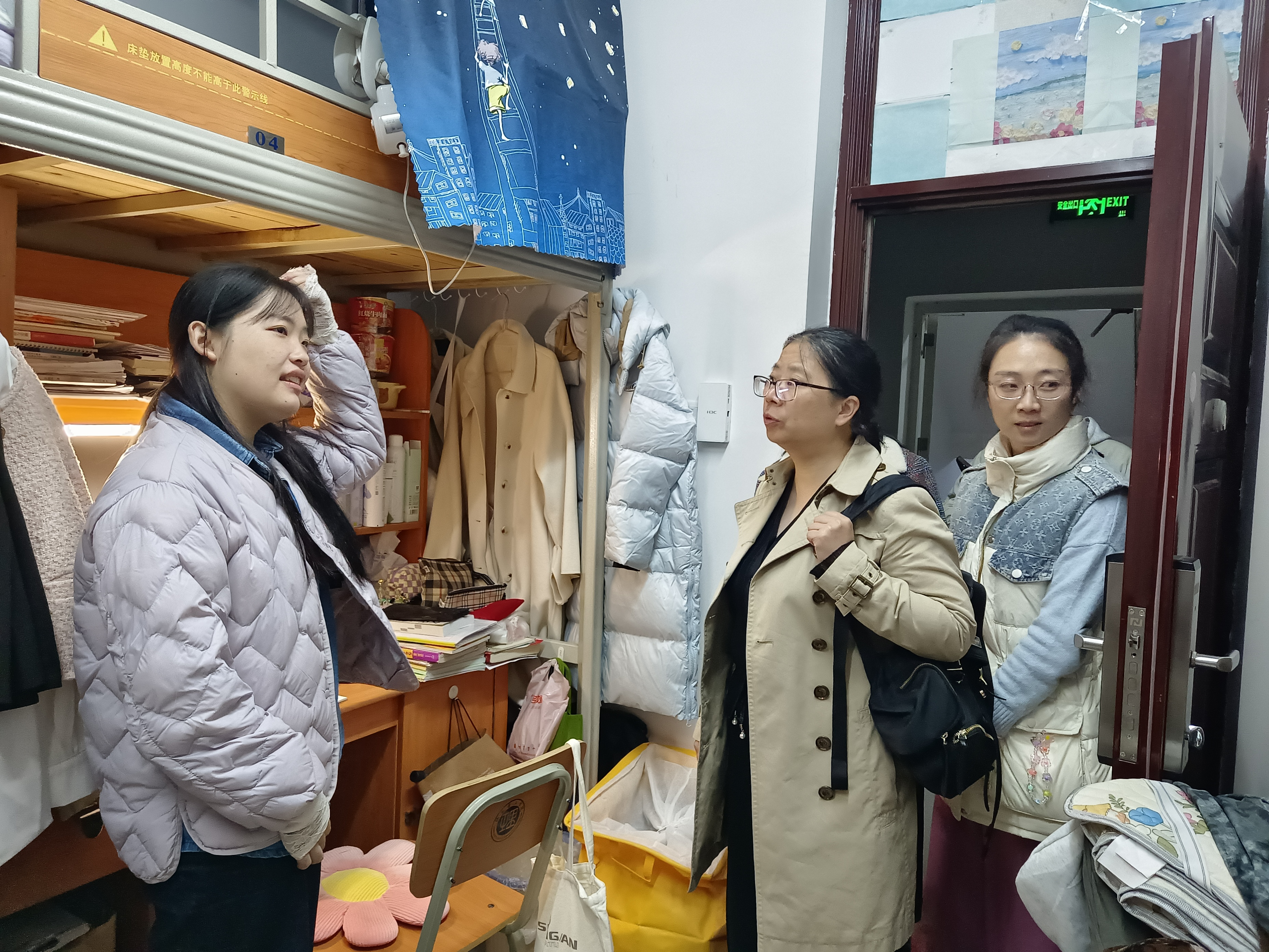 老师们认真检查了寝室内的安全状况,耐心地向同学们讲解校园安全知识,尤其强调使用违规电器的危害,提醒大家务必遵守公司规定,共同维护一个安全、和谐的校园环境。