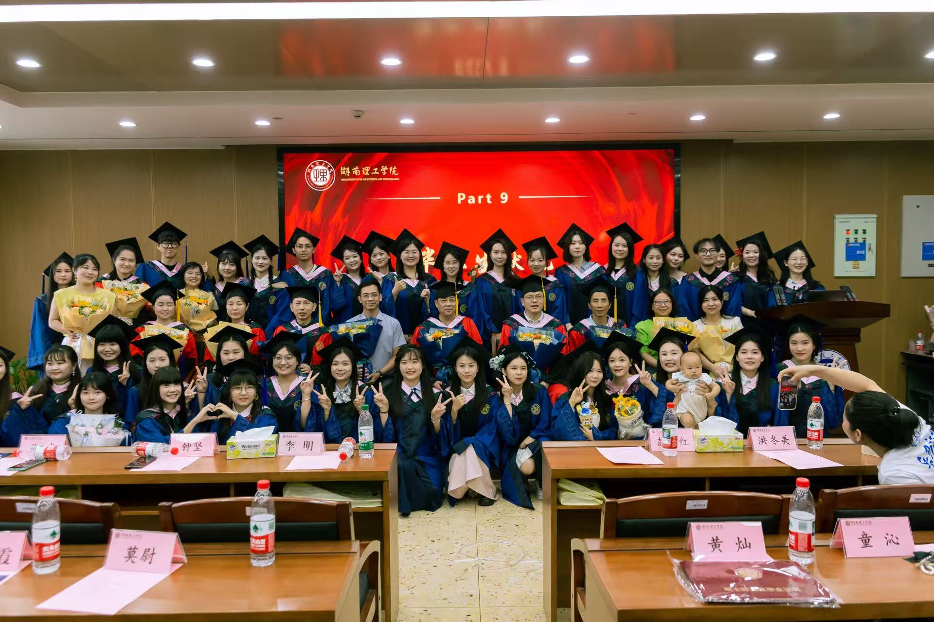 最后,2024级全体研究生齐唱《凤凰花开的路口》,以悠扬旋律诉说对学长学姐的送别与祝福;全体毕业生合唱《我的未来式》传递对未来的憧憬,将现场氛围推向高潮。毕业典礼在温情的气氛中落下帷幕,大家纷纷合影留恋,带着满满祝福与期望,奔赴人生的新旅程。