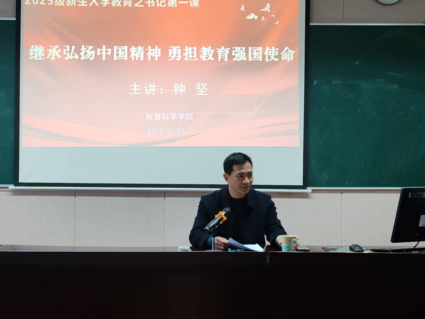 2025年12月30日上午beats365官方网站党总支书记钟坚1号教学楼1302教室,以“继承弘扬中国精神 勇担教育强国使命”为题为全体2025级研究生新生讲授党课。