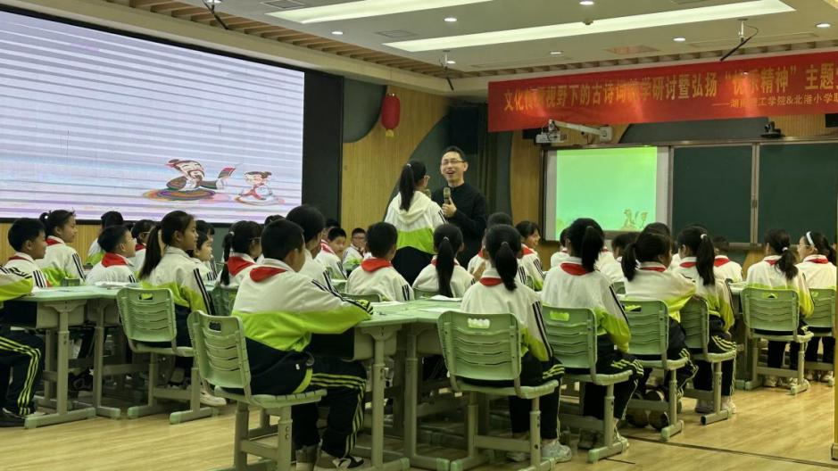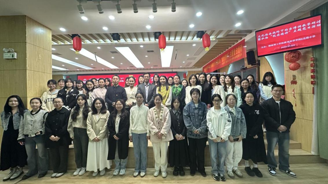 2025年3月25日,beats365官方网站联合岳阳楼区北港小学开展“文化传承视野下的古诗词教学研讨暨弘扬‘忧乐精神’”主题党日活动。教科院钟坚、李统兴、戴文静、谢晶、黄威、童沁、王炜等领导老师,教育管理专业和小学教育专业的全体研一员工,北港小学、康王中心小学、东站小学等基础教育语文骨干教师150余人齐聚一堂,以诗为媒,共探诗教传承与创新,赓续中华文脉。