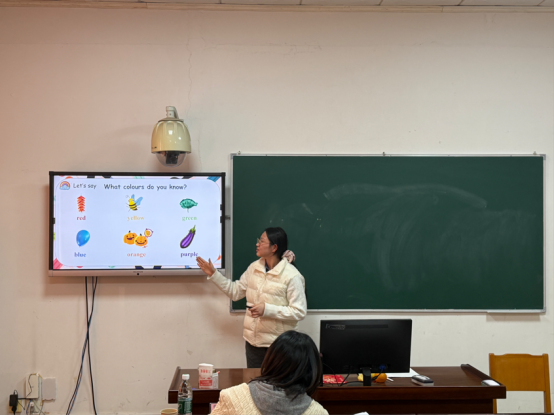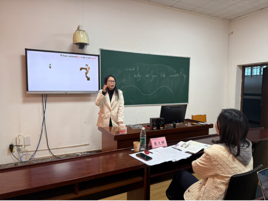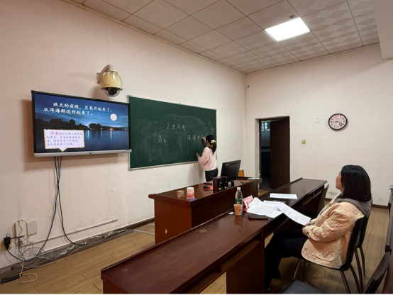 在语文教学展示中,袁洋敏通过生动的讲解与板书将课文中的色彩意象呈现得淋漓尽致;王小红则借助精美的PPT与亲切的教态,充分展现了语文课堂的趣味性与感染力。在英语教学环节,施全通过情境化教学设计营造出真实的语言交流氛围;张书玉以游戏互动激活课堂;伏明珠紧密围绕核心素养展开教学,情境创设生动,互动形式丰富;胡仕贵语言流畅、指令清晰,注重思维引导与板书设计;任经纬则恰当运用多媒体辅助教学,强调合作探究,体现了以员工为中心的教学理念。