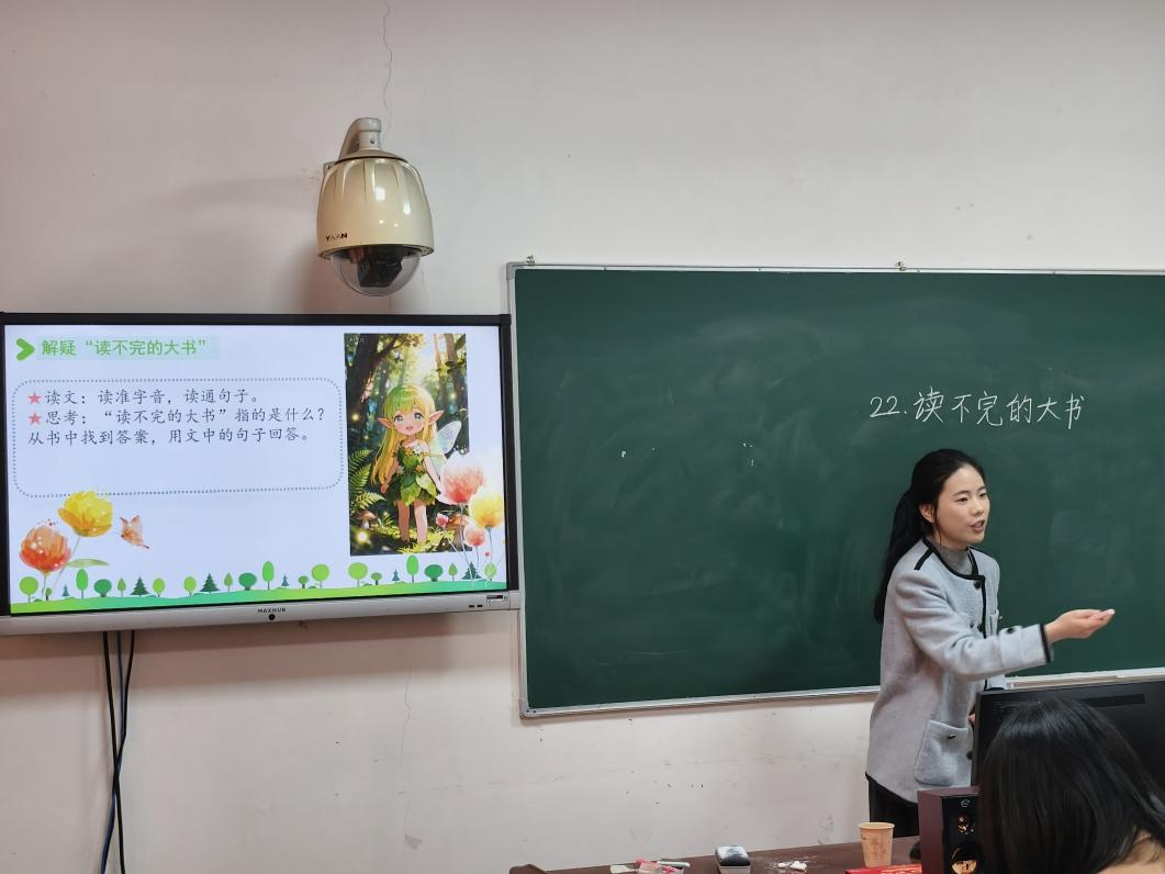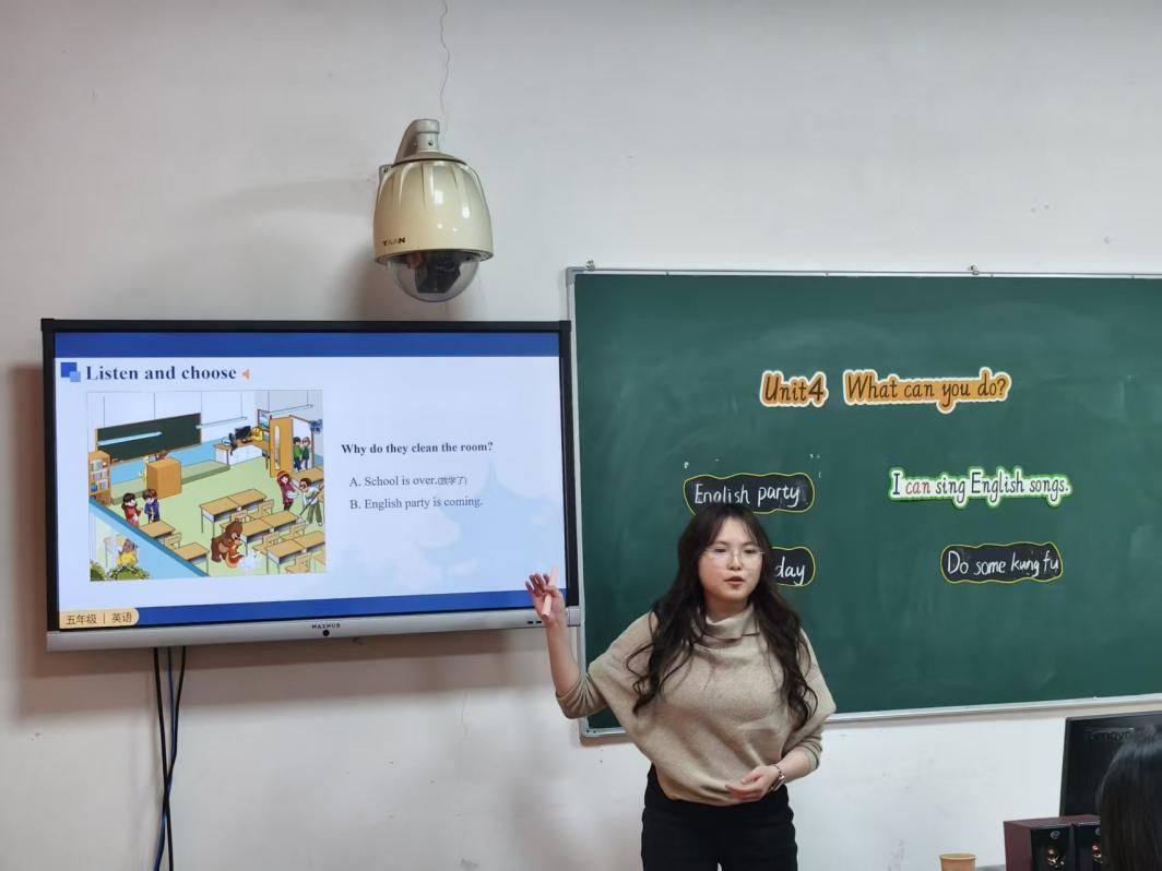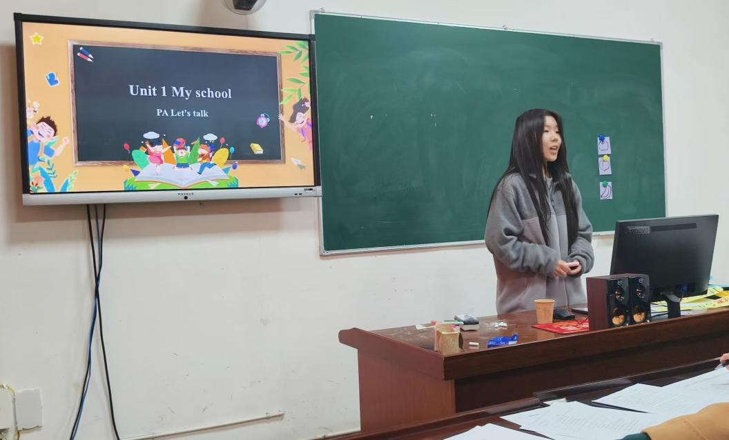 在片段教学展示环节,同学们围绕小学语文与小学英语学科展开精彩讲授。语文教学方面,许靓同学通过富有感染力的语言与清晰的板书设计,生动呈现了课文的情感脉络;杨庆同学运用多媒体课件与互动提问,增强了课堂的趣味性与参与感;葛萱萌同学注重文本细读与情境营造,展现了深厚的文学解读能力;李颖同学教态亲切自然,环节设计层层递进,体现了以员工为中心的教学理念。