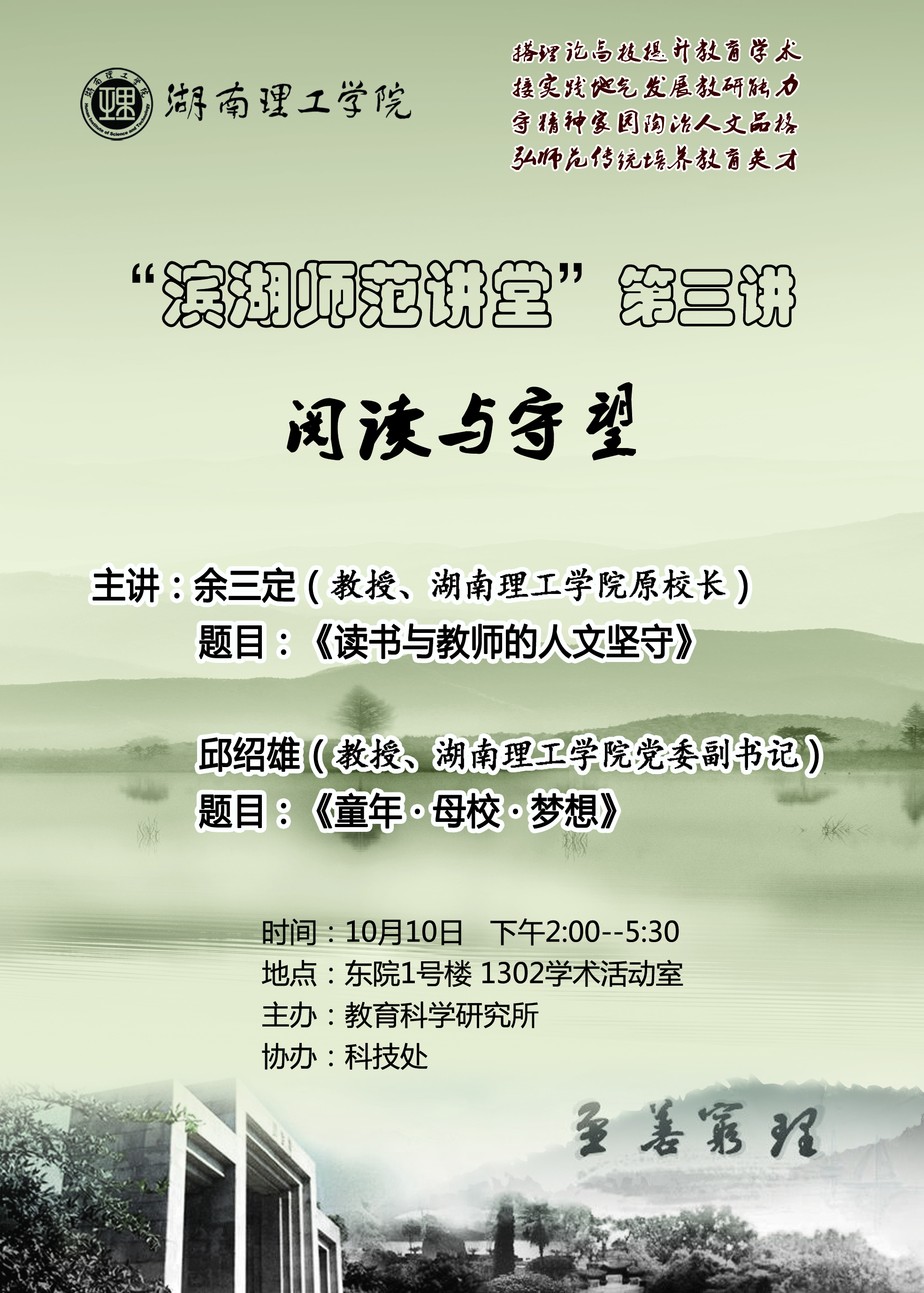 【学术讲座预告】滨湖师范讲堂第三讲“阅读与守望”