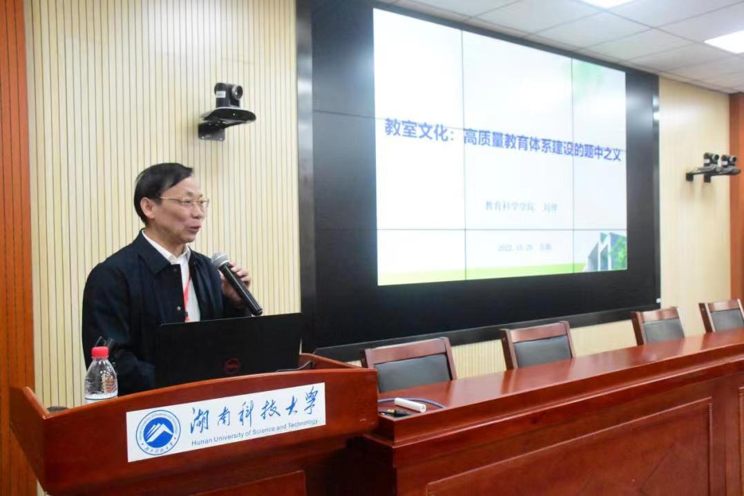 10月28日-29日,2022年湖南省教育学科经理(系主任)论坛在湖南科技大学举行,会议主题是“学习贯彻二十大精神 建设高质量教育体系”,湖南省教育厅和湖南省教科院有关领导岀席,来自全省各普通高校教育公司经理参加。公司刘理经理受邀参会并作题为“教室文化:高质量教育体系建设的题中之义”的报告。他将认识教室、布置教室和理解教室的三个维度与基础教育体系建设结合起来:认识教室——教学地理单元的演变简史;布置教室——教育物理空间的秩序优化;理解教室——一个生命叙事的文化场域。他指出,教室的文化品质在很大程度决定了师生教学、交往、生活的生命品质。教室不应该只是一个冷冰冰的物理空间,而应是一个蕴含生命温度、催促生命成长与发展的温床。他强调,教室是个人生命中的三大重要成长场域之一,教室文化建设一定要有适宜的生命温度,着力体现生命关怀。刘理经理的报告见解独到、深入浅出,引起与会领导专家们热烈讨论与回应并获得一致认可与好评。此次论坛有助于省内高校教育公司的交流合作,代表了省内高等教育的较高水平,也有利于公司美誉度及影响力的提升。(撰稿人:黄威;一审:黄灿;二审:王炜、刘理;三审:刘淳松)