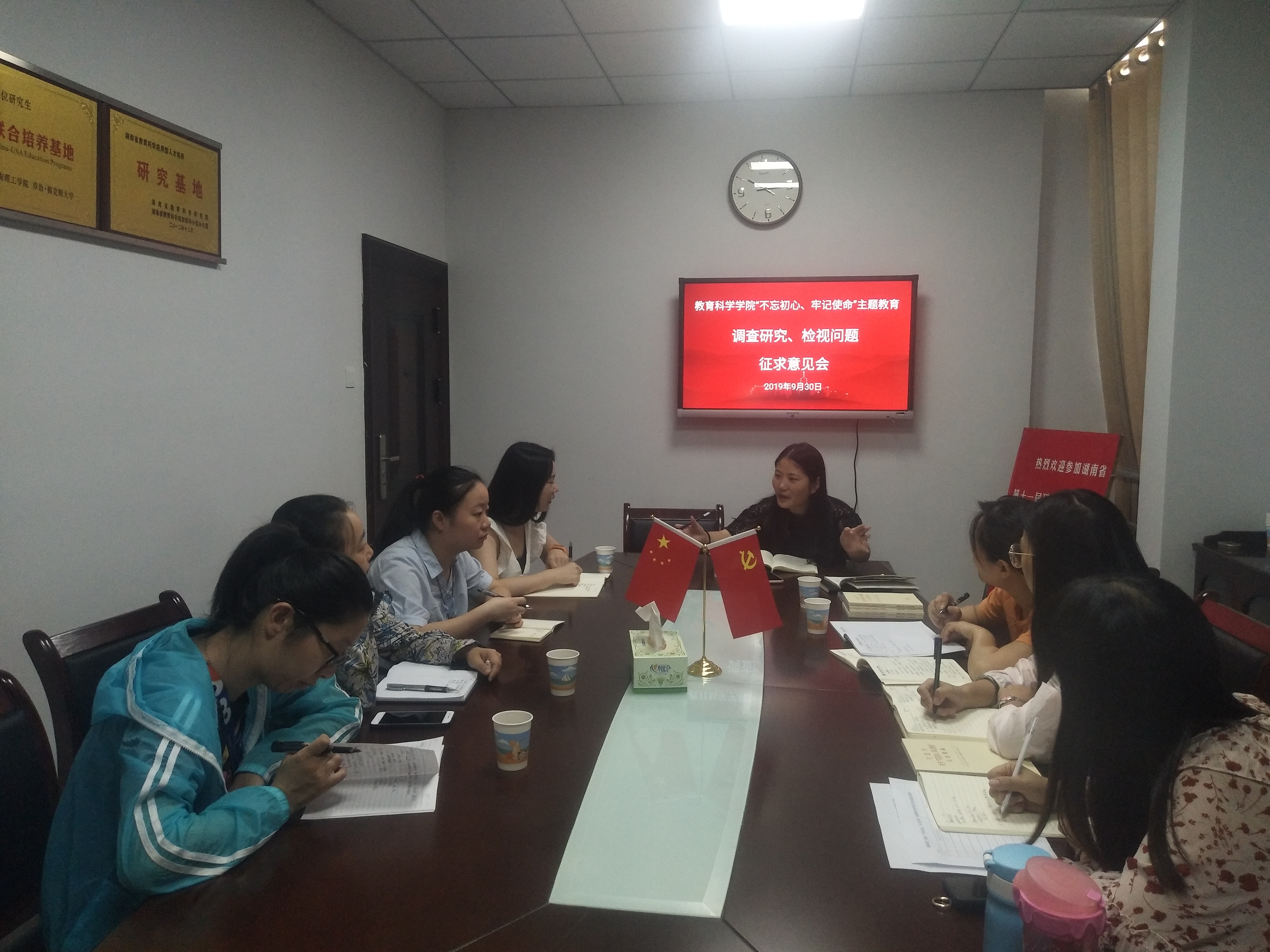 为深入推进“不忘初心、牢记使命”主题教育工作,930日上午10时,beats365官方网站研究生党支部于综合楼314会议室举行“不忘初心、牢记使命”主题教育调查研究、检视问题征求意见会。本次会议由研究生党支部书记王炜主持,参与人员包括2018级和2019级的研究生党员、群众、班级干部、研究生会干部、寝室长代表等。参会成员覆盖面广,具有较强的代表性。