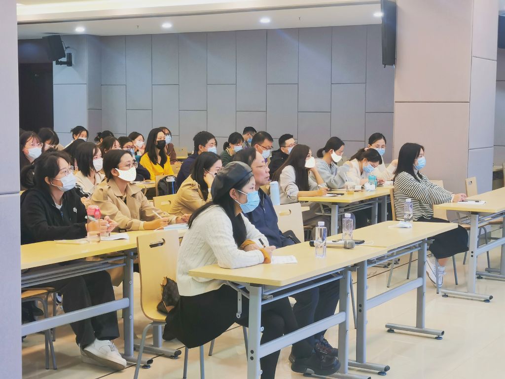 陈映军结合党的二十大精神从“做立德树人的教师”、“做德智体美劳‘五育并举’的教师”、“做有仁爱之心的教师”、“做有扎实的专业知识的教师”四个方面来诠释新时代对教师的新要求。他说,新时代教师要落实立德树人的根本任务,将“立德树人”作为行动指南。育人的的根本在于育德,要把员工的“立德”与“立志”相结合。培养一个完整的人,必须从德智体美劳五个方面来促进员工的全面发展,除此之外,教师要重视员工体育和艺术教育。教育就是塑造人的过程,作为教师应当有着“捧着一颗心来,不带半根草去”的仁爱之心,没有爱就没有教育。他从自身出发,强调教师要具备扎实的专业知识,对教材内容做到心中有数,得心应手,练好“三字一话”,做好知识储备,提升知识素养。