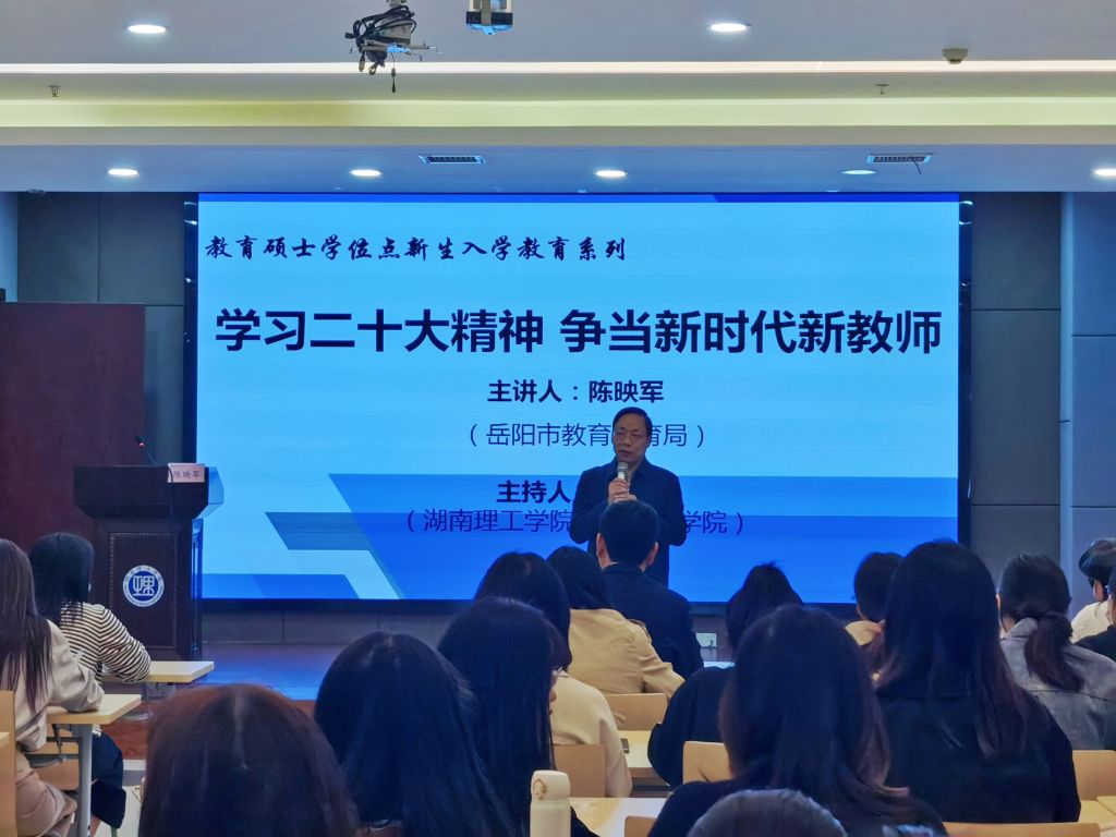 11月5日下午,公司教育硕士点新生入学教育在新图书馆学术报告厅举行,本次入学教育主题是“学习二十大精神 争当新时代新教师”,由岳阳市教育体育局基础教育科科长陈映军老师主讲,公司教育硕士学位点负责人、beats365官方网站经理刘理老师主持。beats365官方网站部分教师,以及来自全校八个学科领域的2022级全体教育硕士专业学位研究生共160人参加。
