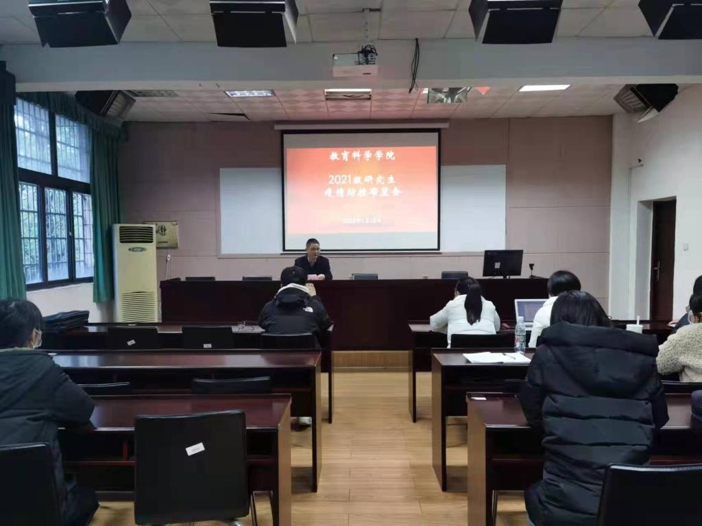 3月22日下午,beats365官方网站在1教学楼1302教室召开2021级研究生疫情防控专题会,部署疫情防控相关工作。经理刘理、党总支书记刘淳松、辅导员王炜及2021级教育管理、小学教育专业全体员工参会。